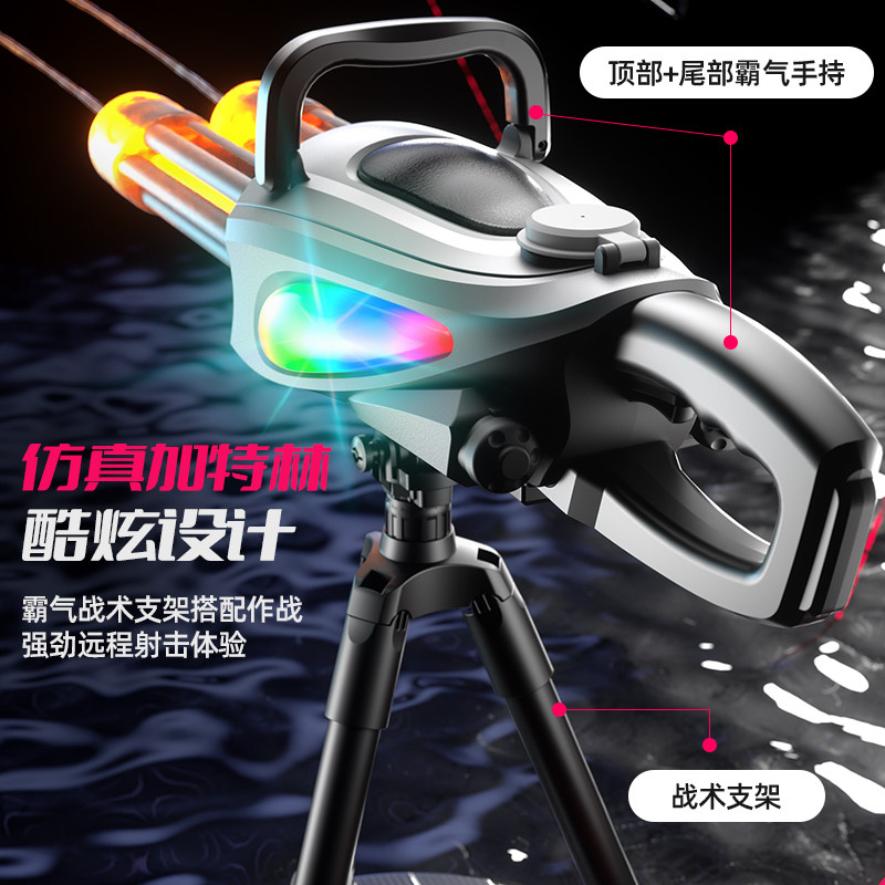 📚 加特林水枪电动连发带灯光儿童大容量高压强力射程远喷水男孩玩具