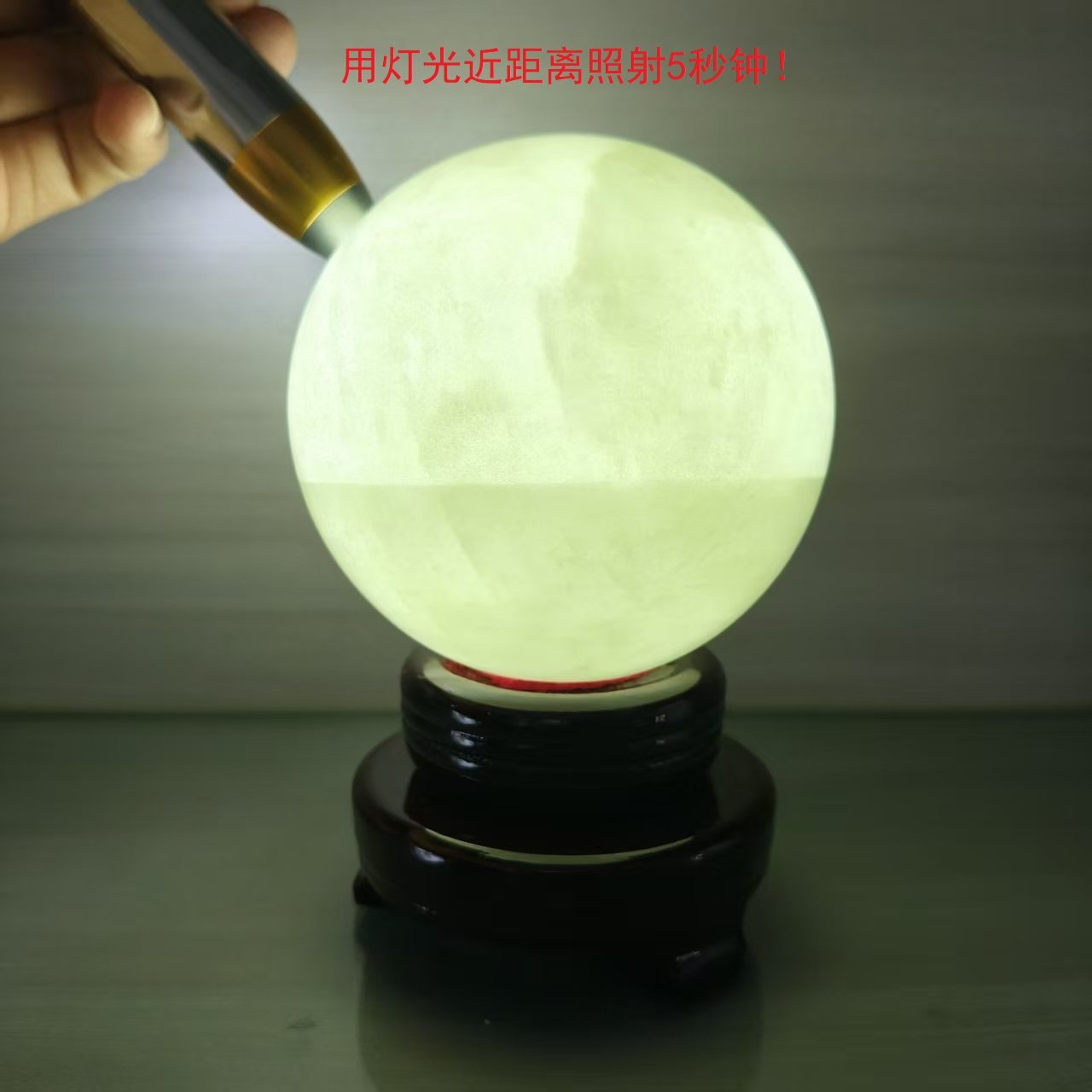 📚 天然冰洲石夜明珠发光球玉石水晶夜明荧光球鱼缸家居饰品办公摆件