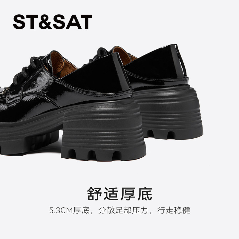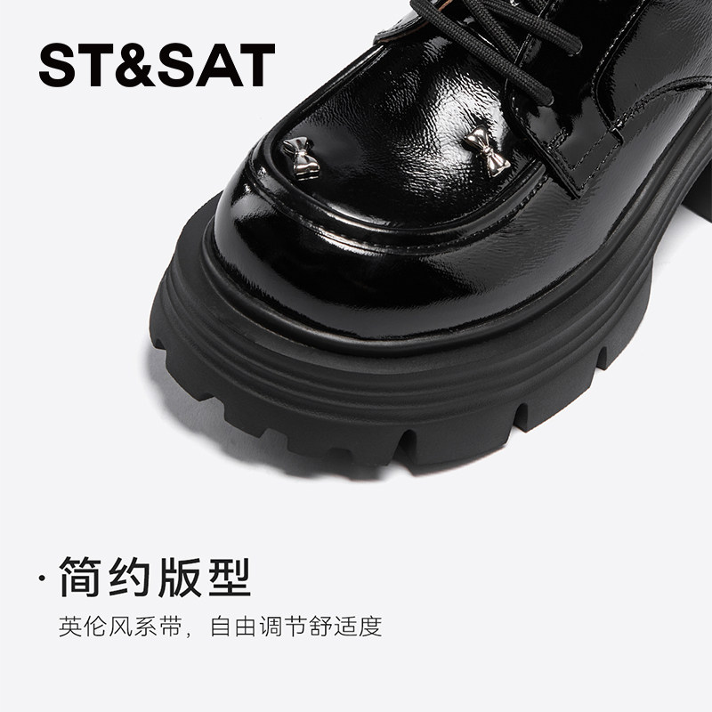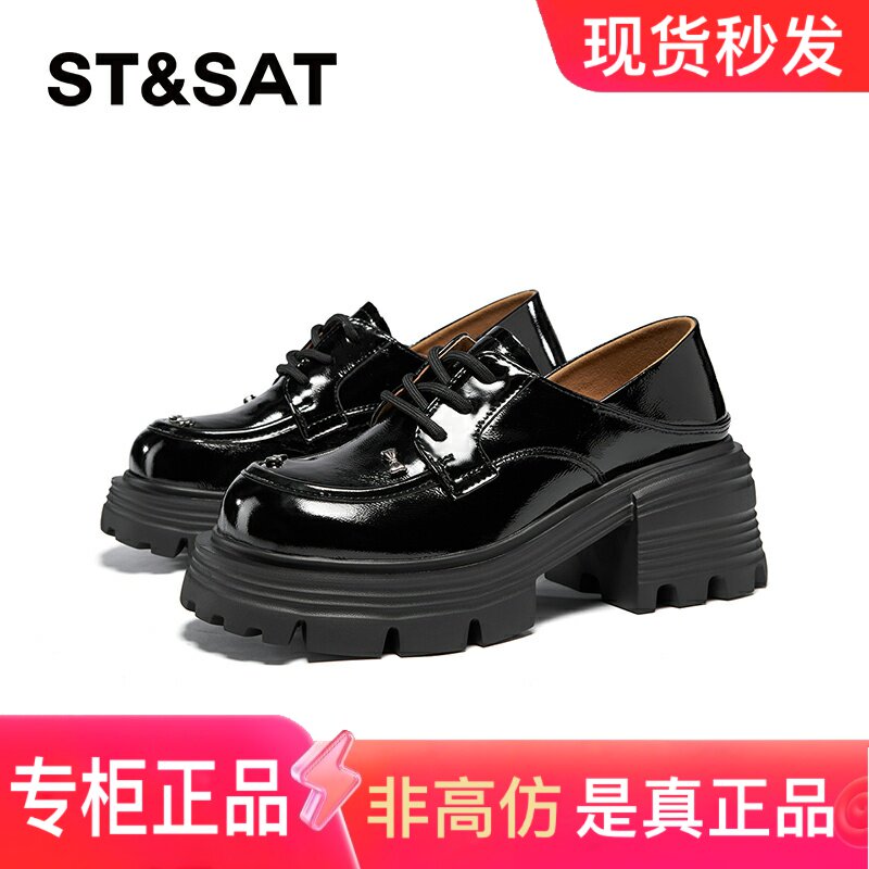📚 星期六黑色小皮鞋深口英伦风乐福鞋2024款增高复古女鞋SSC3112N07