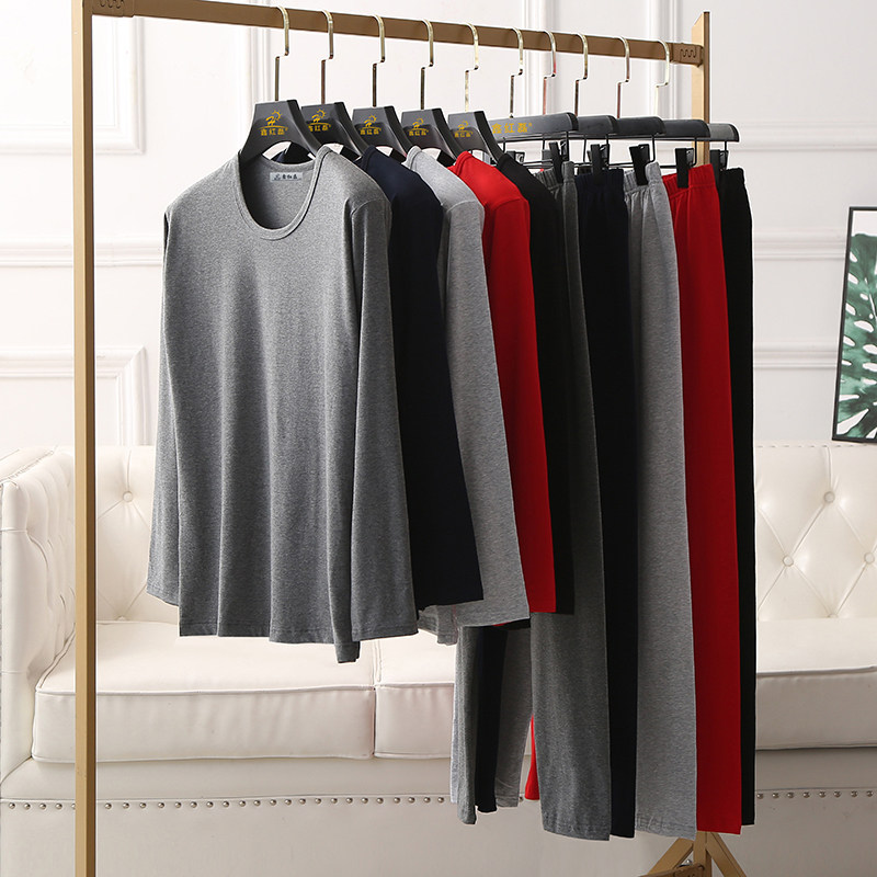 📚 男士秋衣秋裤套装青年薄款打底修身男保暖内衣加绒圆领毛衫秋冬季