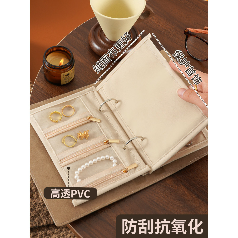 📚 多功能首饰收纳册外出旅行便携保存项链黄金收纳书册防氧化轻奢高级感手饰盒耳环手链手镯戒指包分格布收纳包