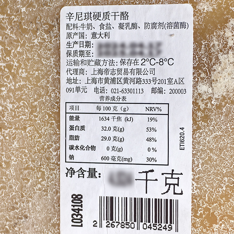 📚 意大利进口意式硬质巴马臣芝士 辛尼琪其干酪帕玛森奶酪整块约4kg