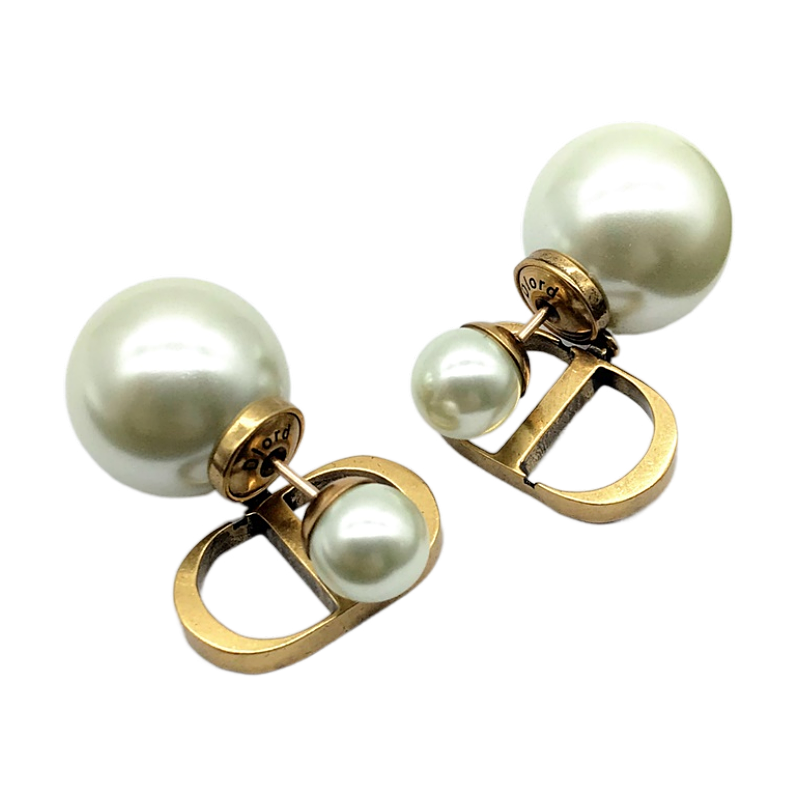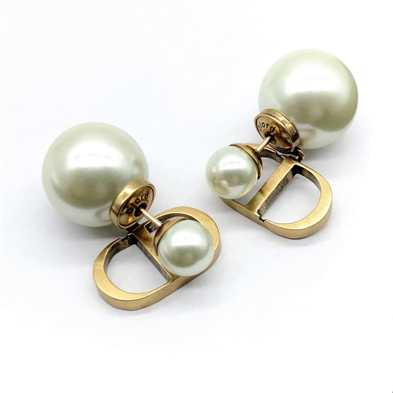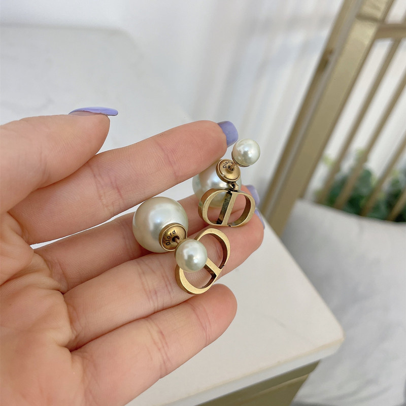 📚 D家耳环2025新款爆款法式高级感轻奢CD大小双珍珠耳钉复古耳饰女
