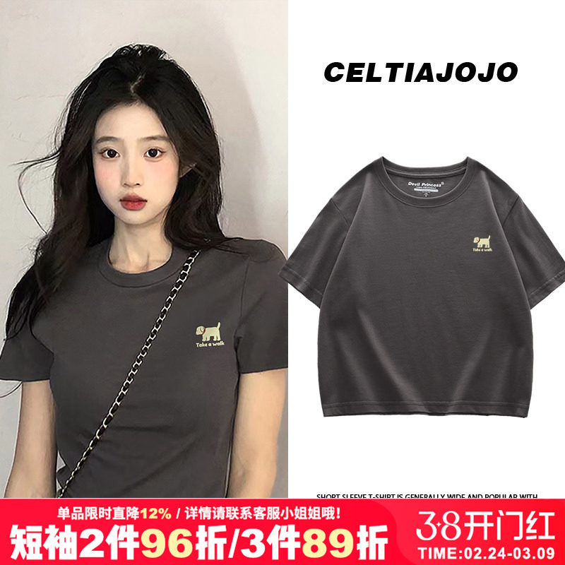 📚 vibe学院风韩系深灰色百搭t恤女显瘦短款辣妹短袖设计感上衣ins潮