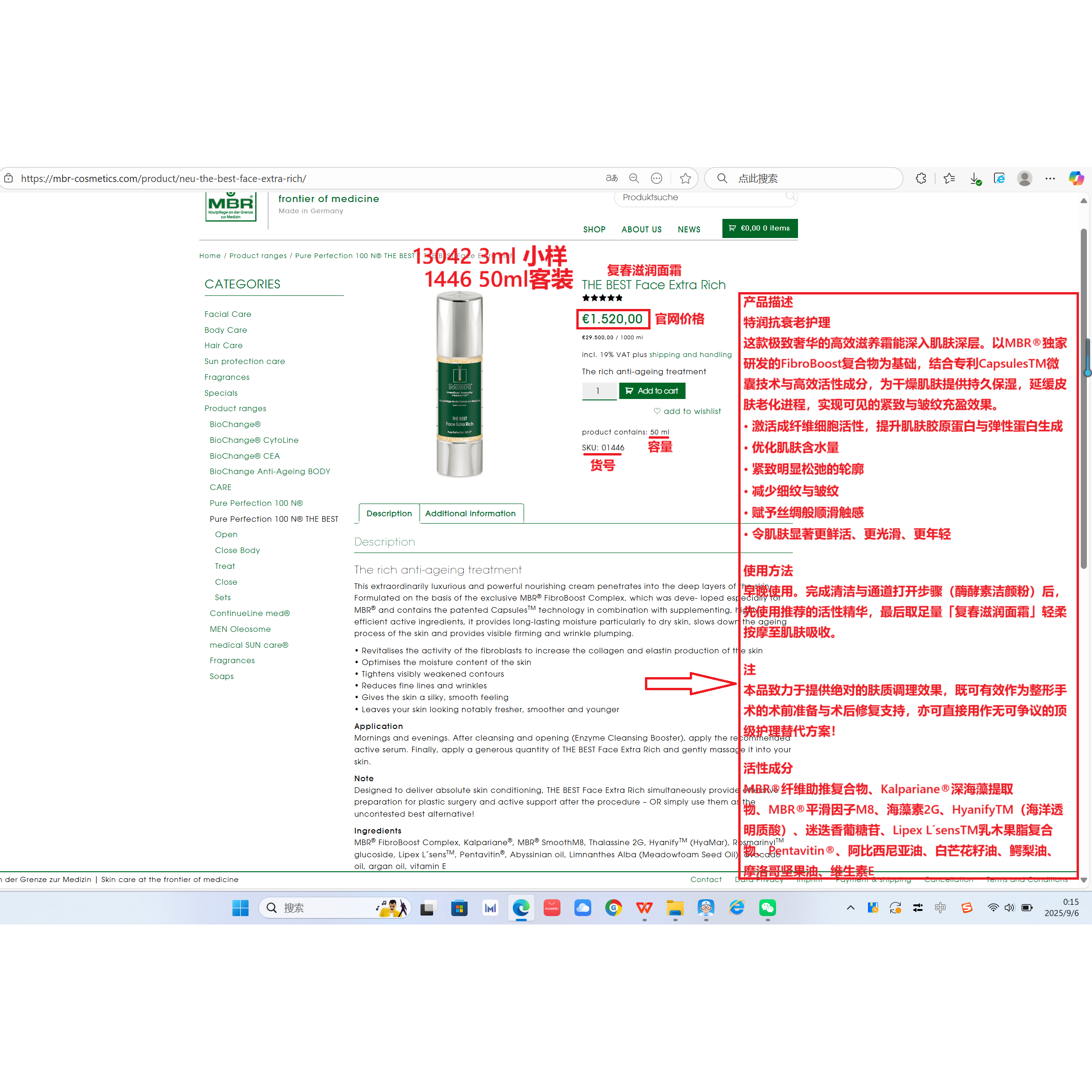 📚 德国MBR复春面霜滋润版 THE BEST Face Extra Rich 50ml/3ml