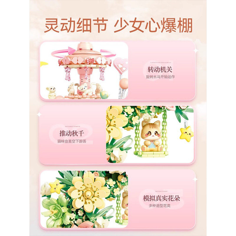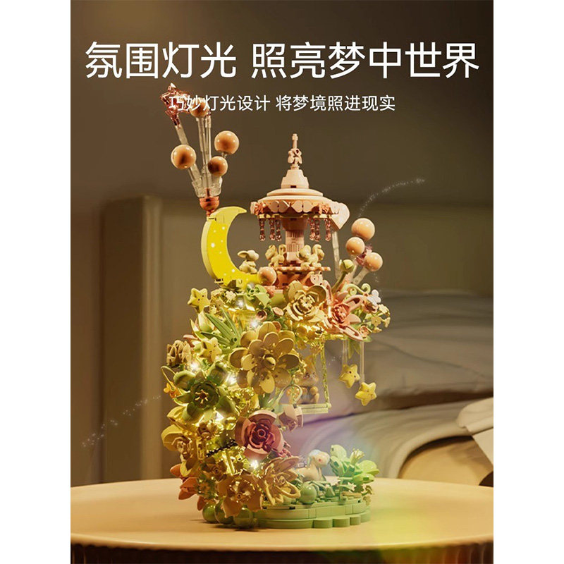 📚 森宝花颜月下积木花狼面可爱创意摆件拼装益智玩具送女友生日礼物