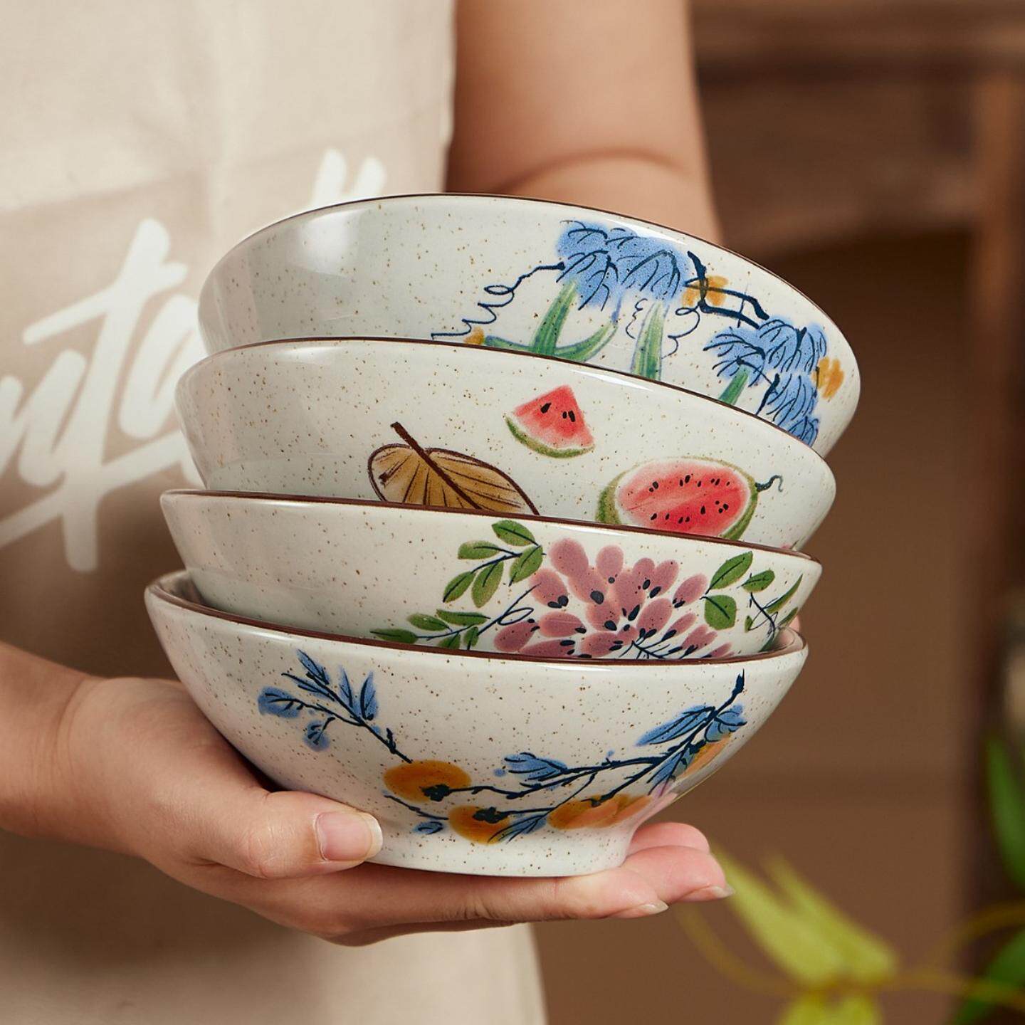📚 釉下彩陶瓷碗中式米饭碗家用高颜值吃饭碗面碗耐高温加厚喝汤大碗
