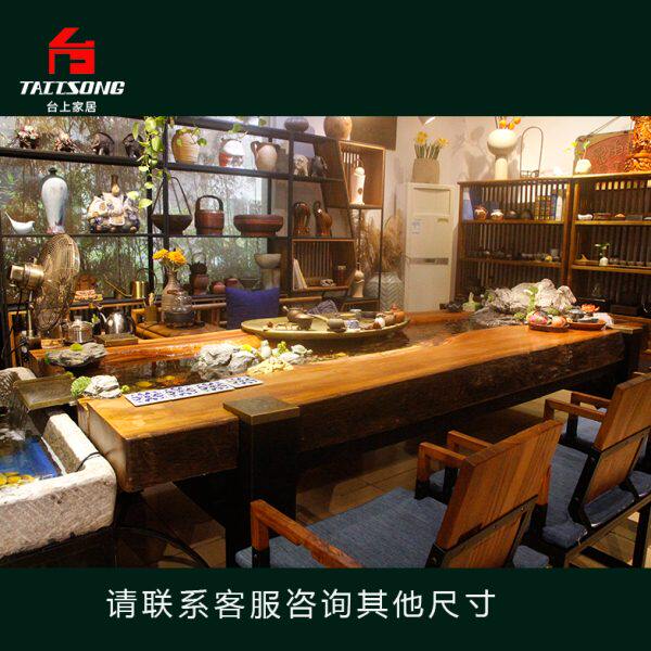 📚 香樟木山水景观流水茶桌养鱼循环中式茶几商用办公室茶台桌椅组合