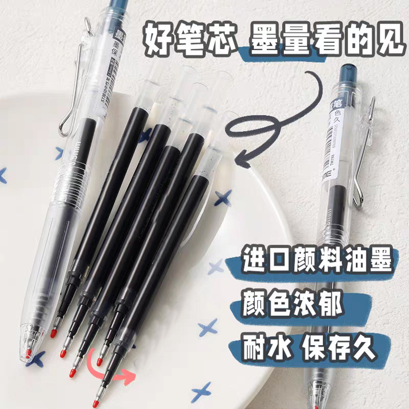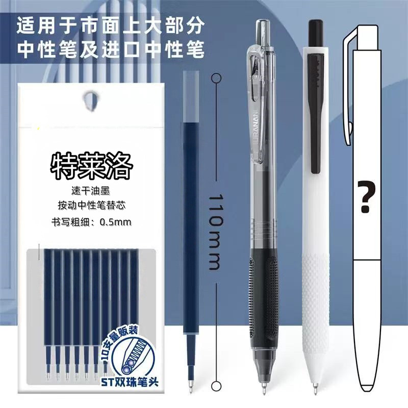 📚 纯正墨蓝色通用笔芯按动中性笔替芯速干顺滑0.5 ST笔尖医护专用芯
