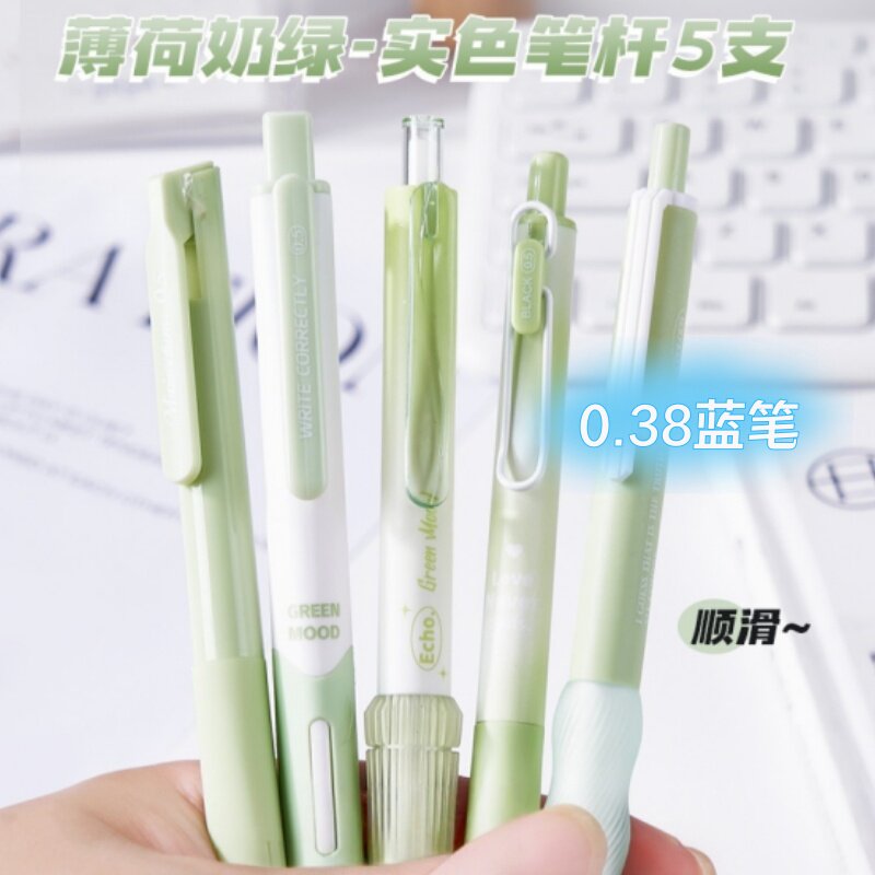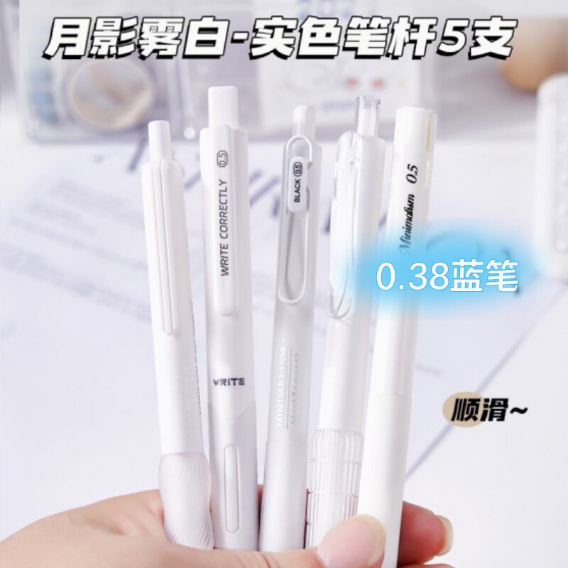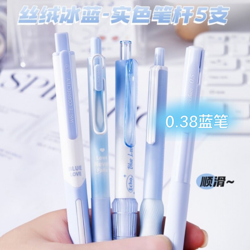 📚 0.38极细蓝笔套装中性笔按动式高颜值速干学生刷题考试笔蓝色笔芯