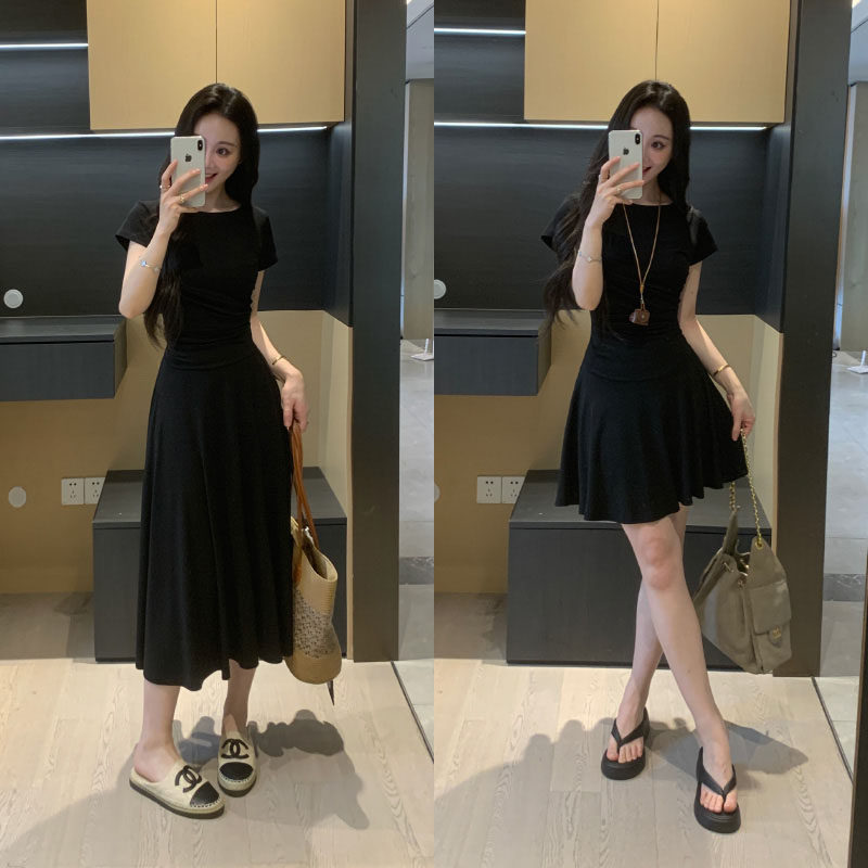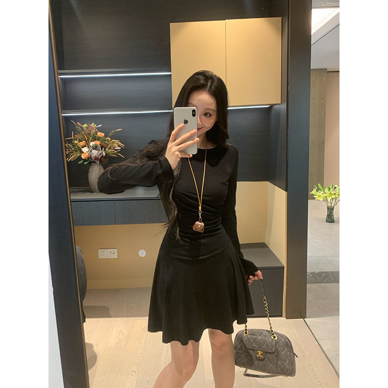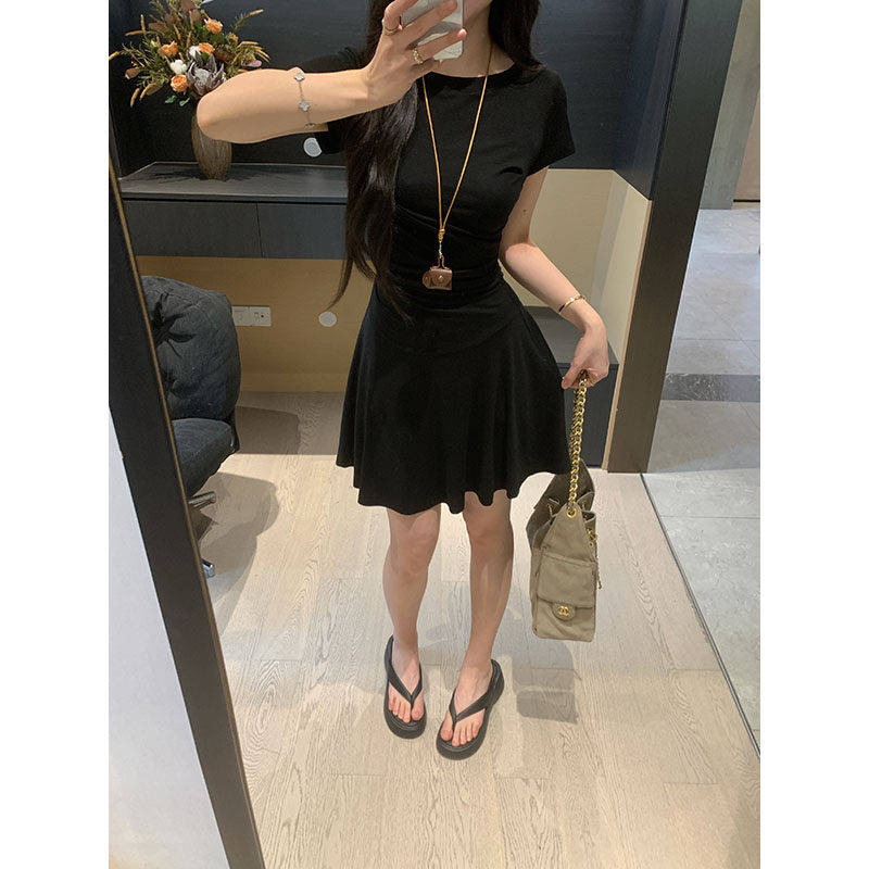 📚 XINYI【曼妙身姿】春夏法式轻薄针织连衣裙收腰显瘦气质小黑裙