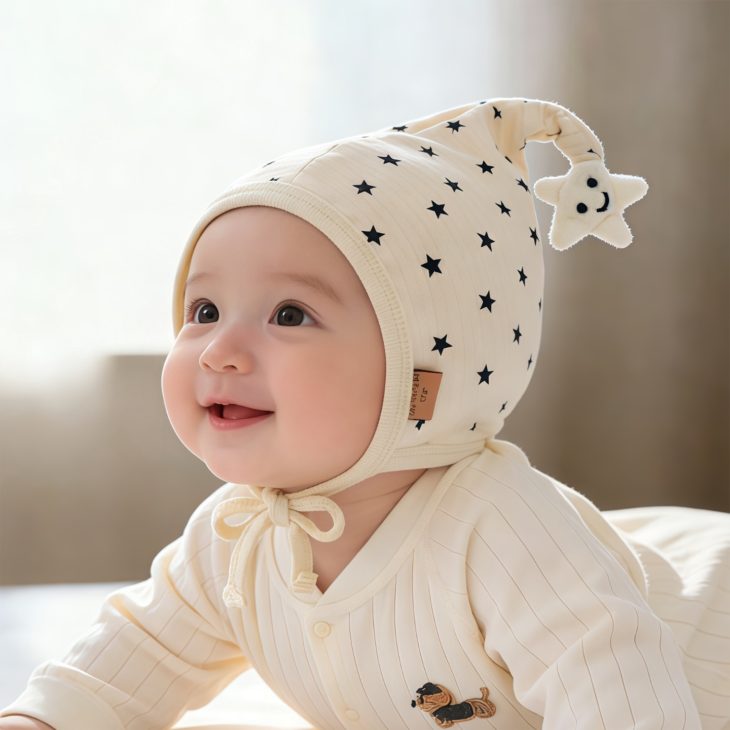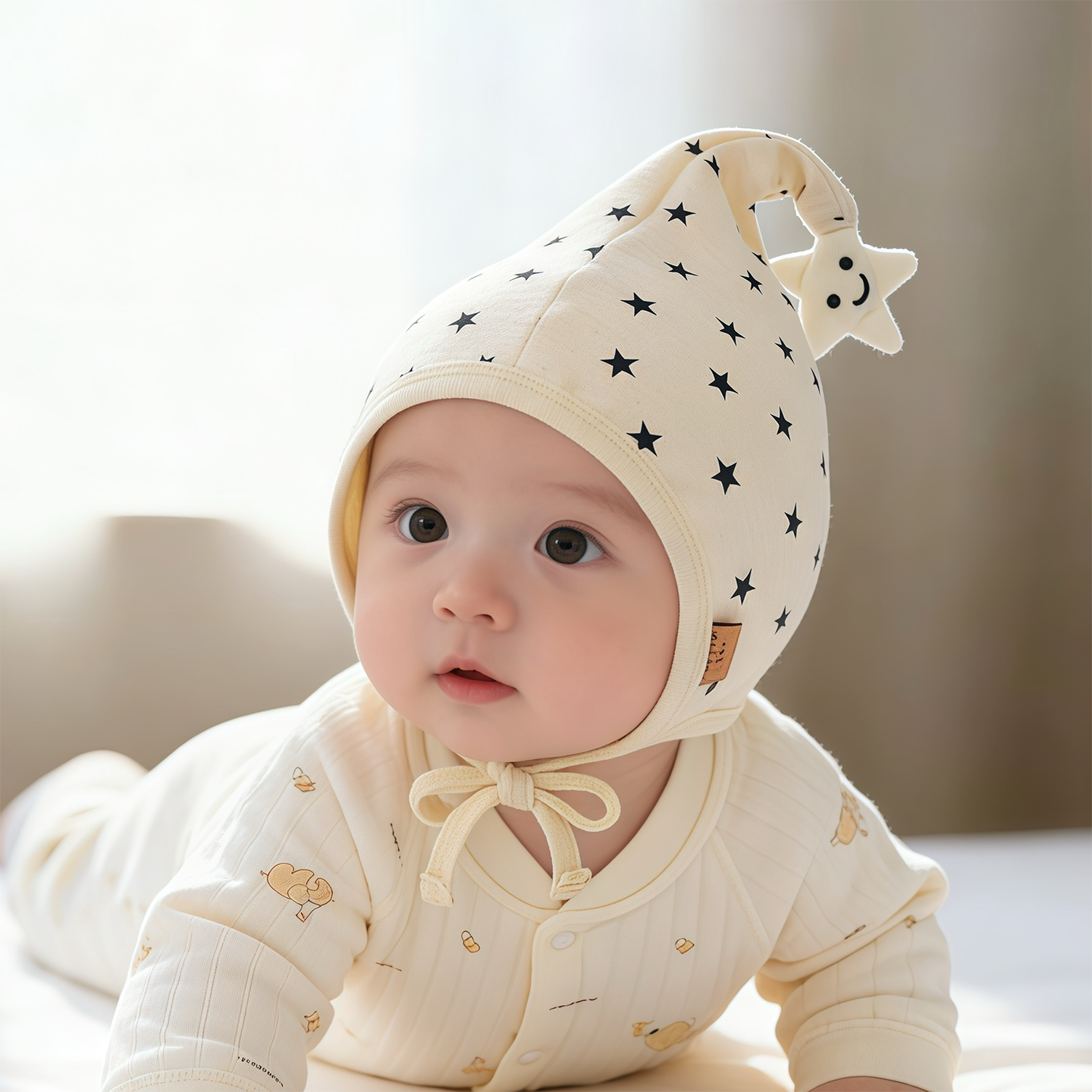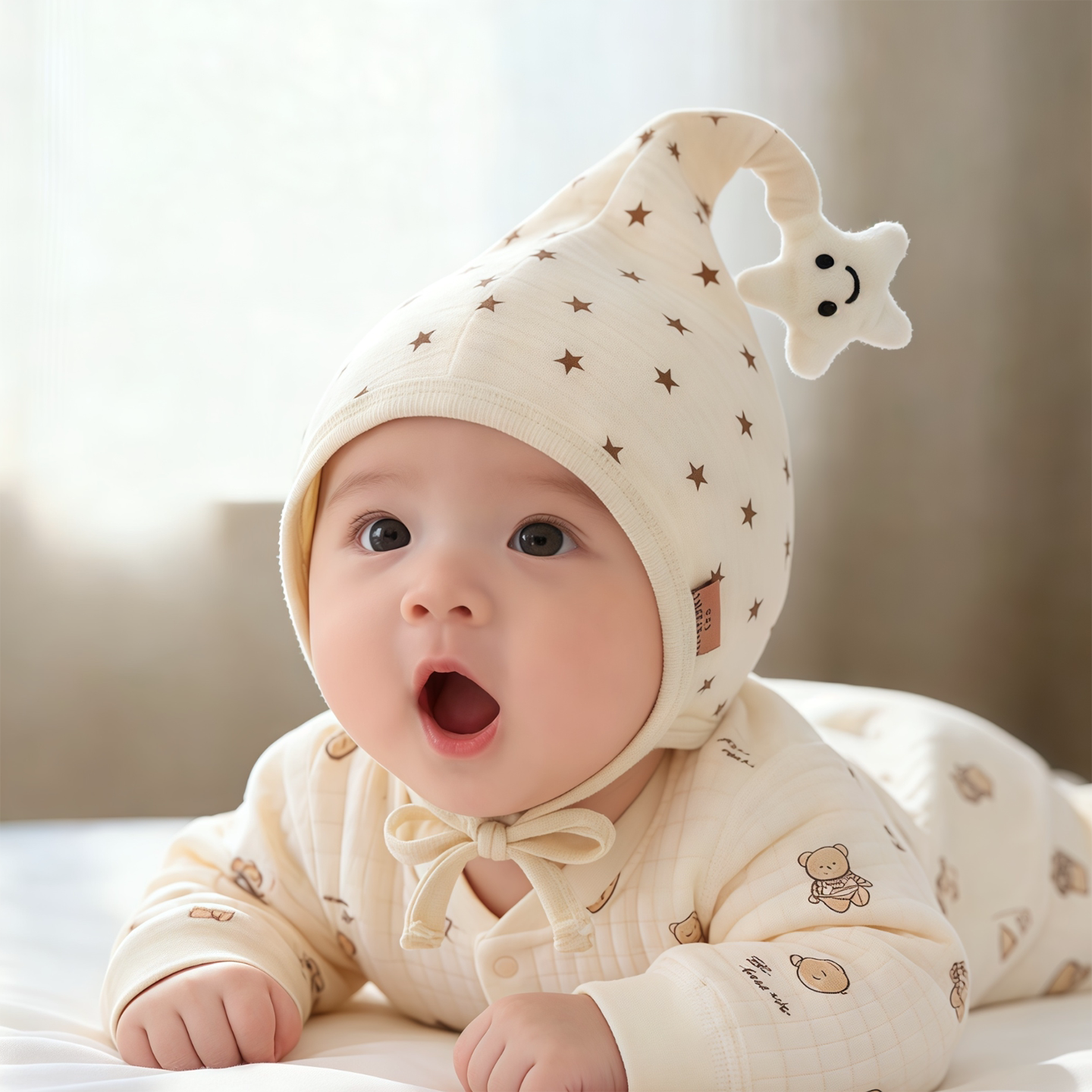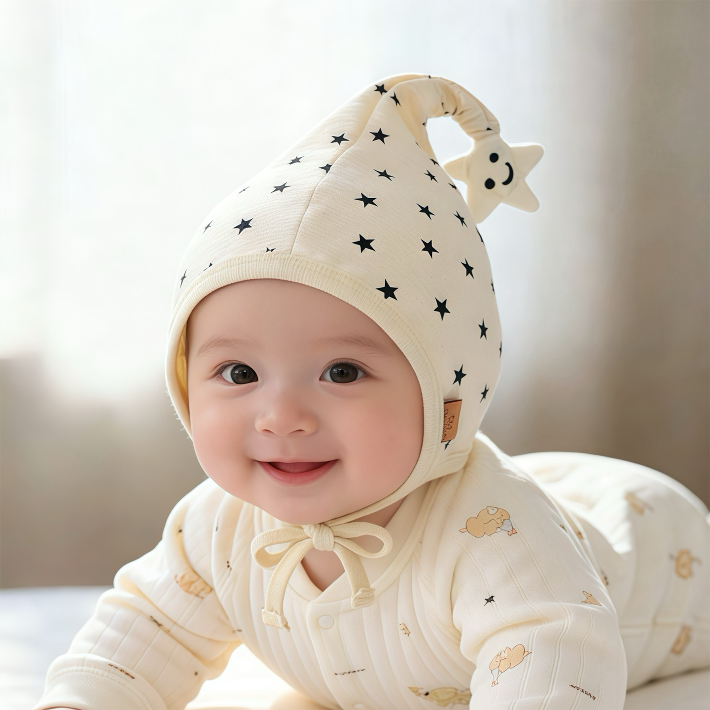📚 韩系婴幼儿帽子春秋薄款护囟门胎帽男女宝宝小月龄新生尖顶精灵帽