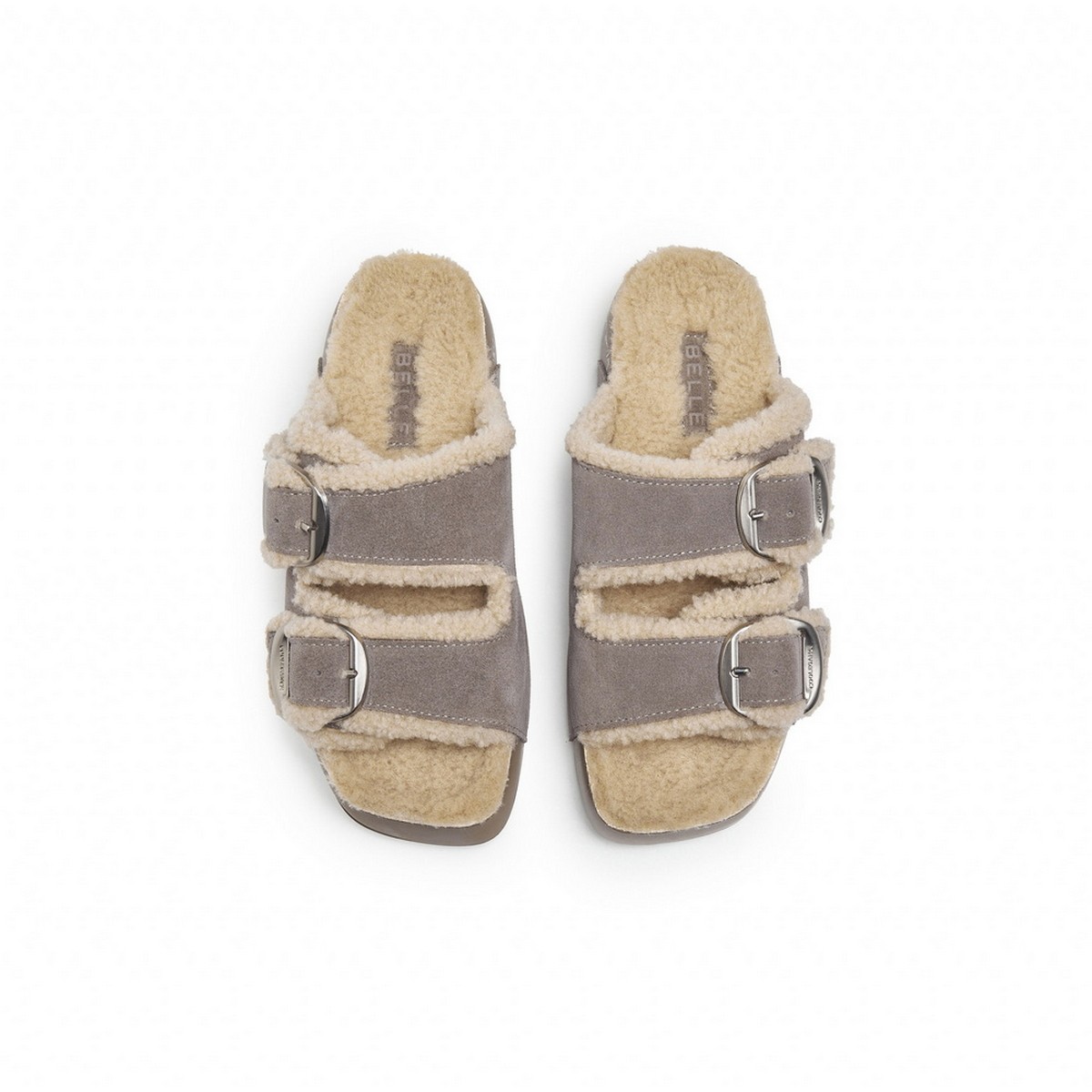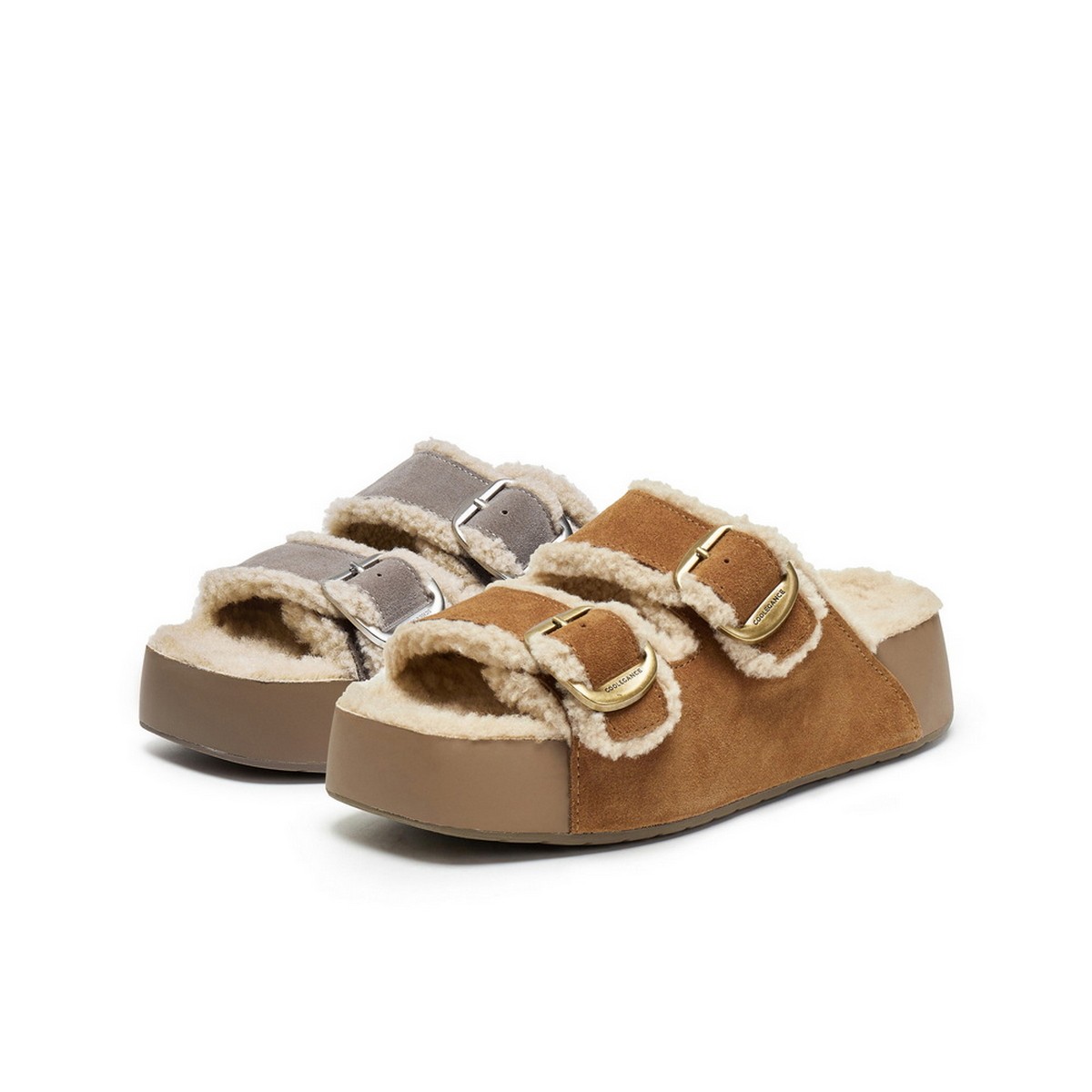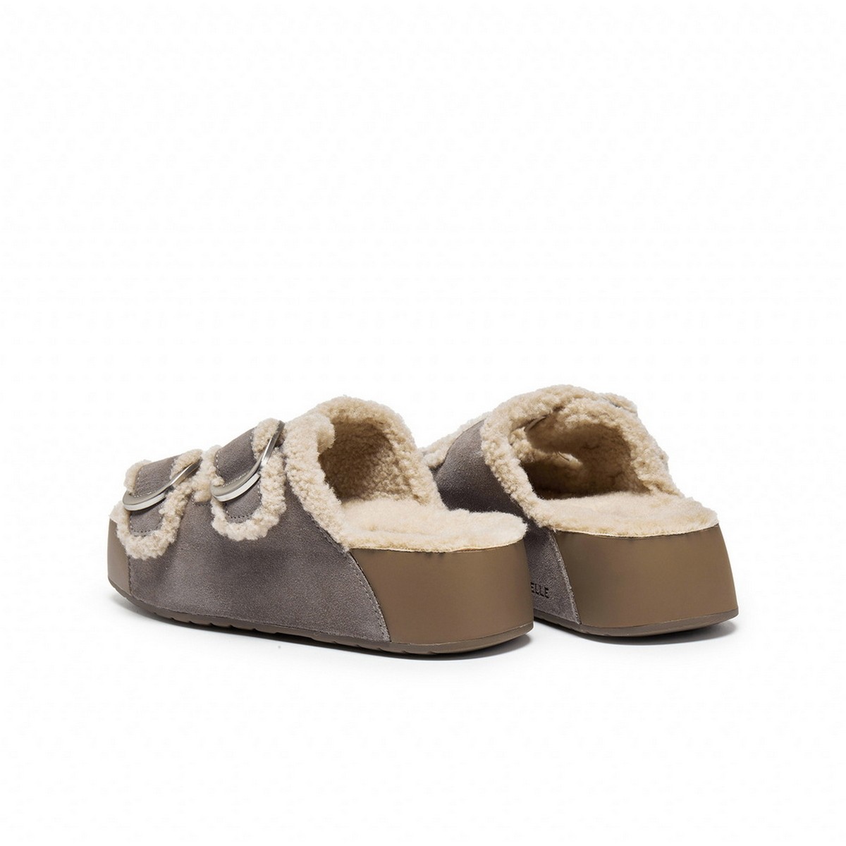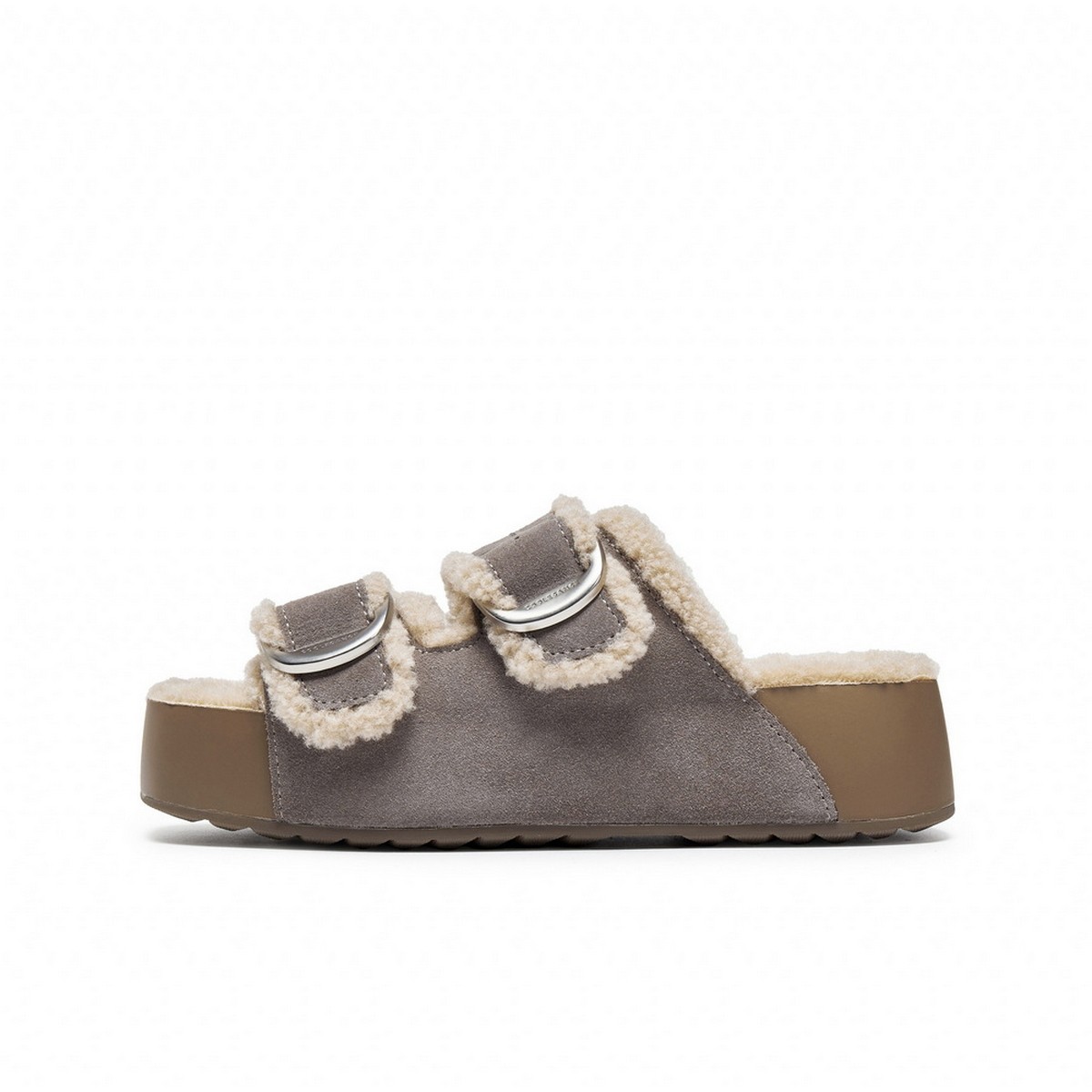 📚 百丽复古双饰扣勃肯鞋女2025冬新舒适毛里厚底拖鞋B2832DT5