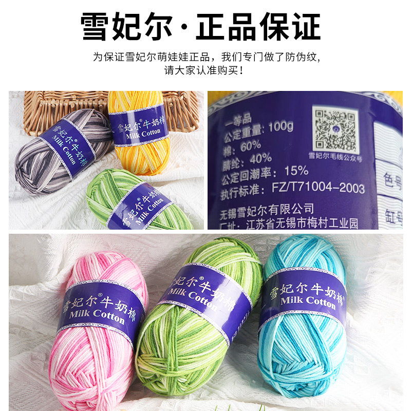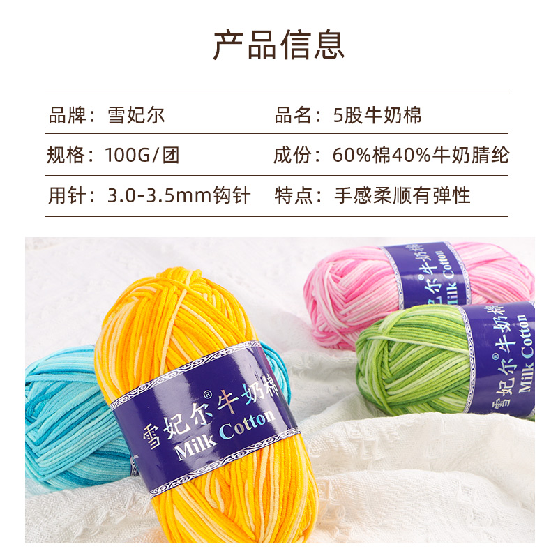📚 雪妃尔5股牛奶棉五股精梳牛奶棉毛线彩色段染手工编织玩偶diy钩针