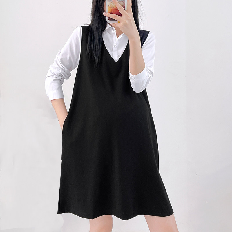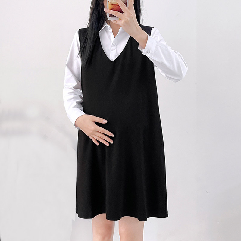 👢接着是这款时尚大码孕妇马甲裙。宽松的版型,既显得大方得体,又不会束缚孕妇的身体。穿上它,既保暖又时尚,简直是职场女性的必备单品。