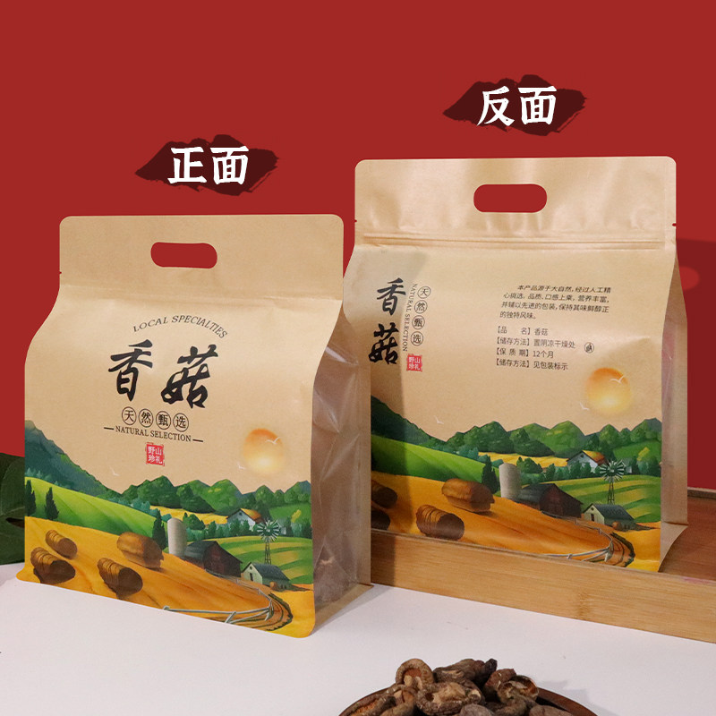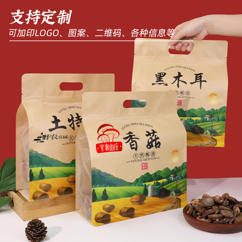 📚 香菇包装袋黑木耳牛皮纸自封袋一斤山珍菌菇土特产密封袋子定制