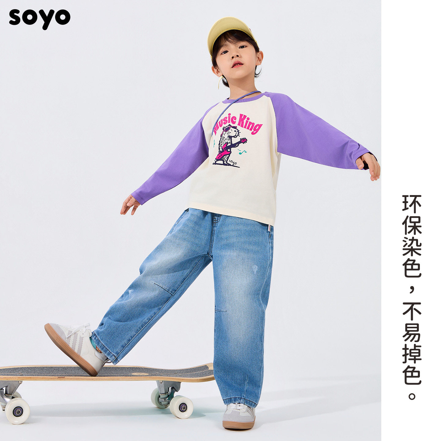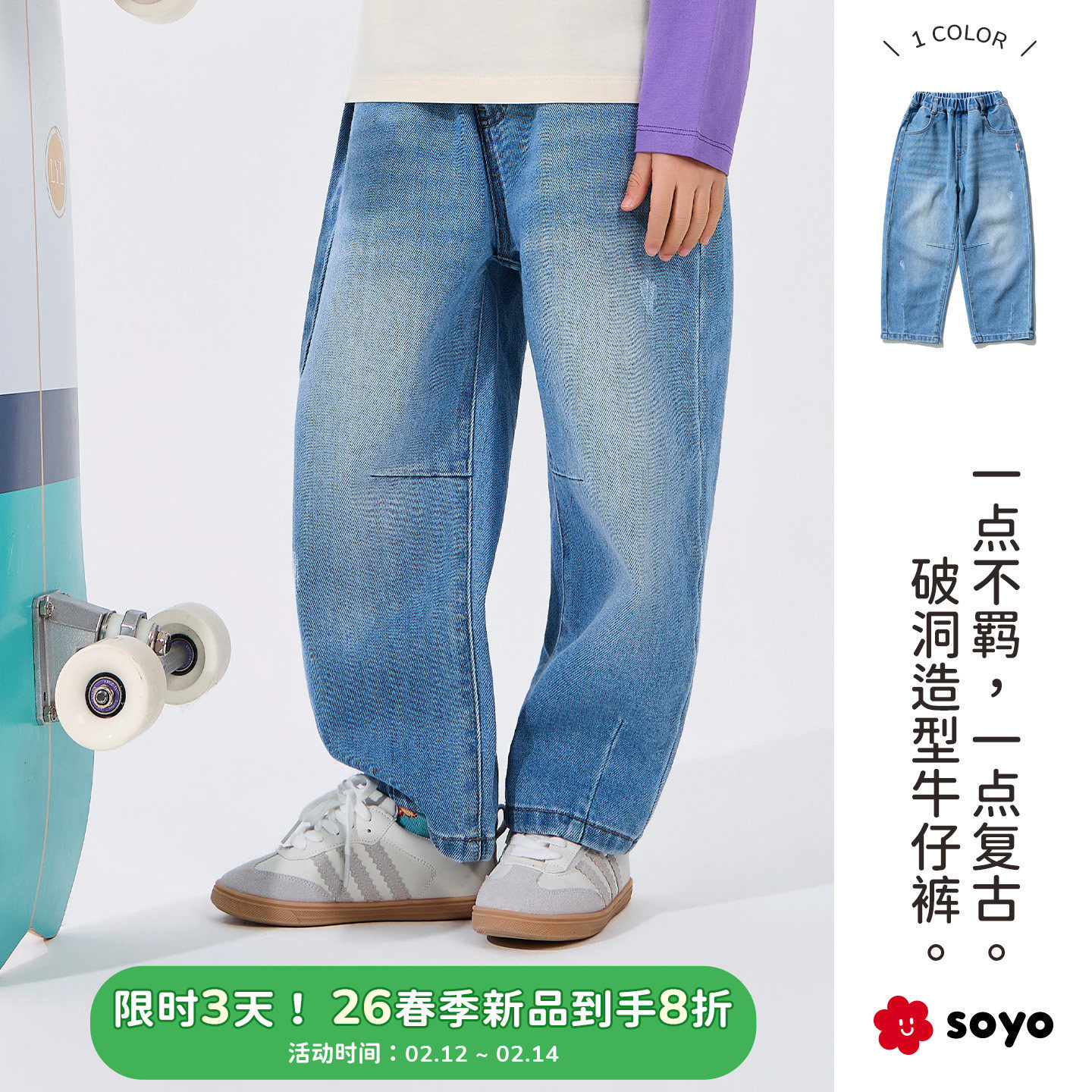 📚 soyo舍予良仓童装儿童牛仔裤2026早春新款复古宽松男童女童休闲裤