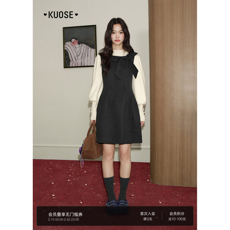 📚 阔色法式收腰连衣裙内搭毛衣两件套装女25冬季灰色背心裙短裙子秋