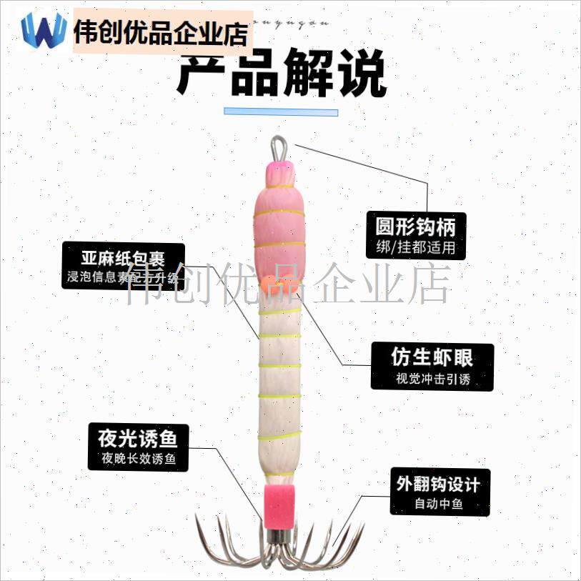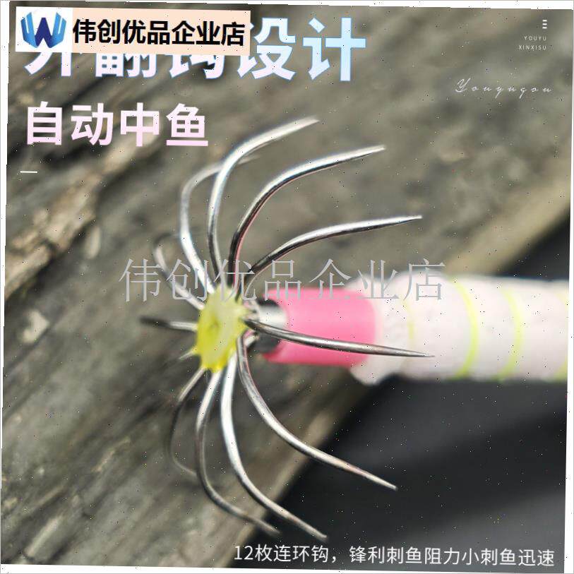 📚 吹筒鱿鱼钩紫外线小布qr卷夜光钩勾章鱼墨鱼土炮双伞钩进口木虾,