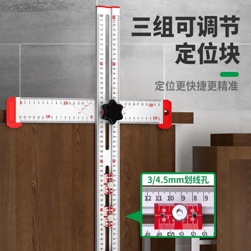 📚 保联组合尺子角度尺90度直尺铝合金木工多功能尺子定位滑动测量尺
