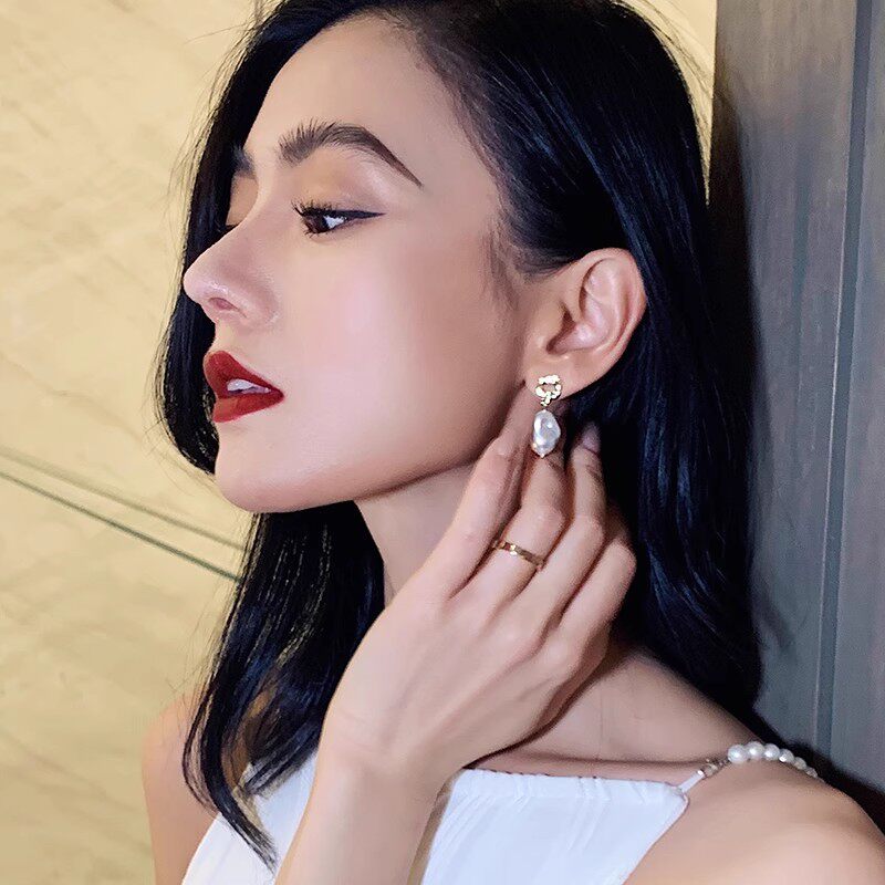 📚 French Baroque Shaped Pearl 2025 temperament earrings female