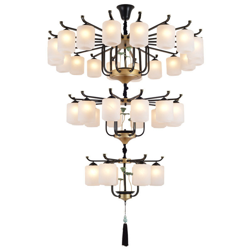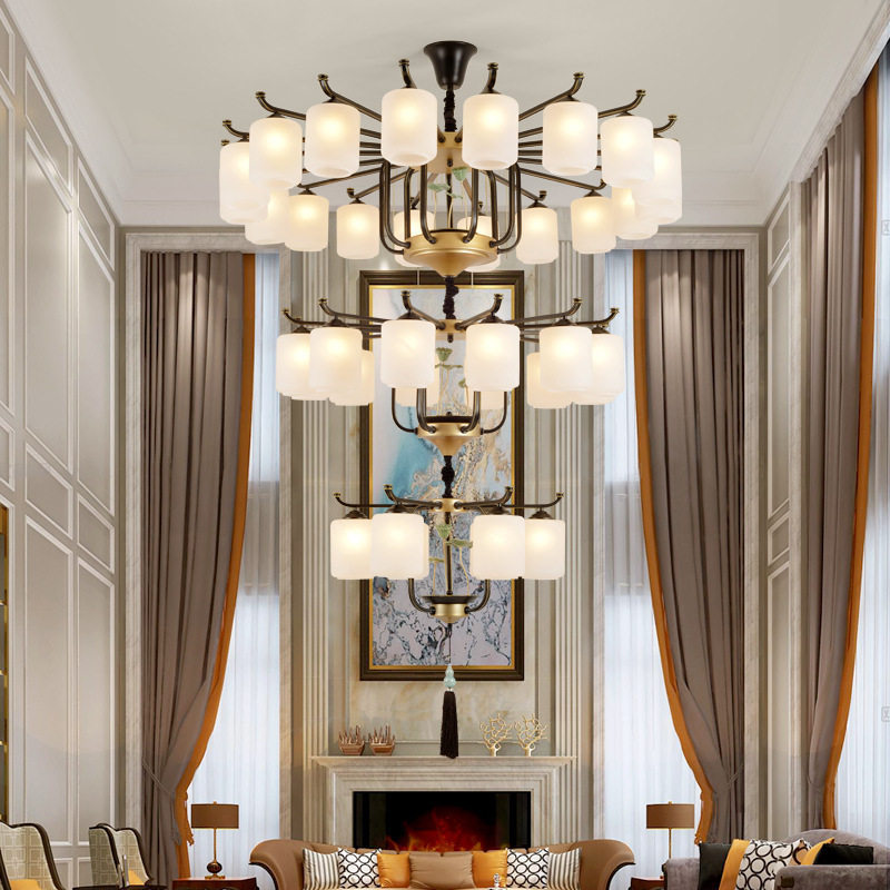 📚 新中式复式楼大吊灯别墅楼梯大厅客厅跃层三层中空挑空楼中楼吊灯