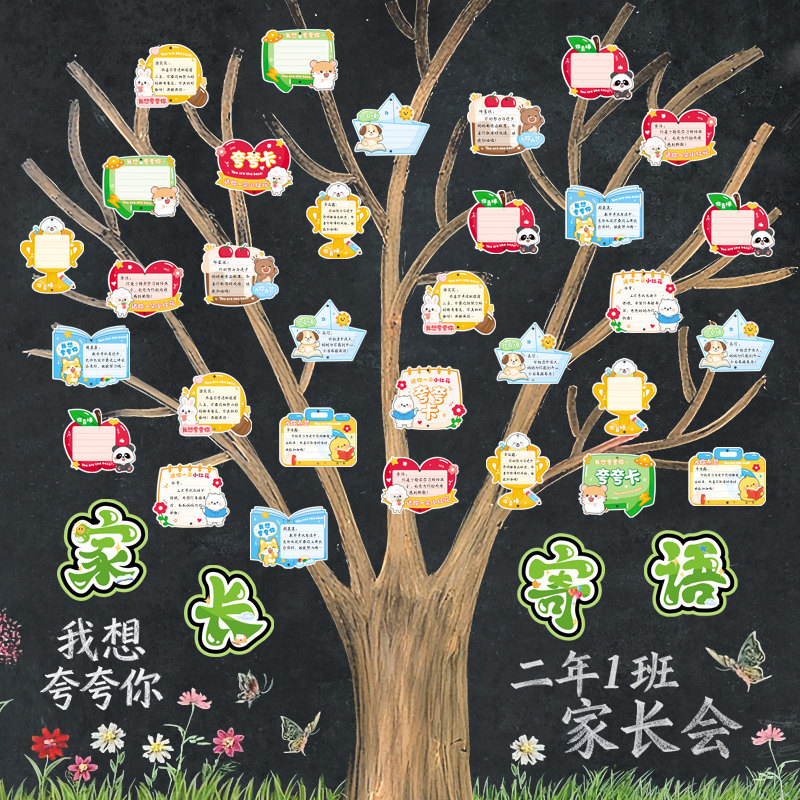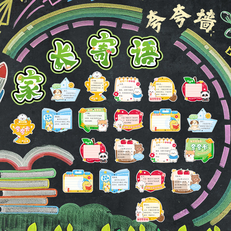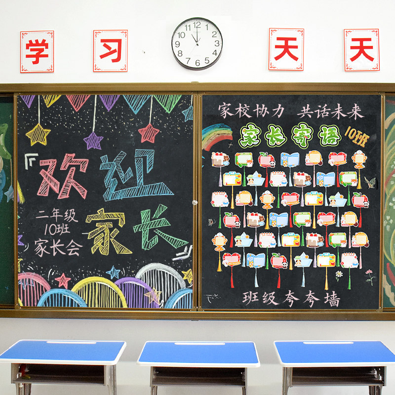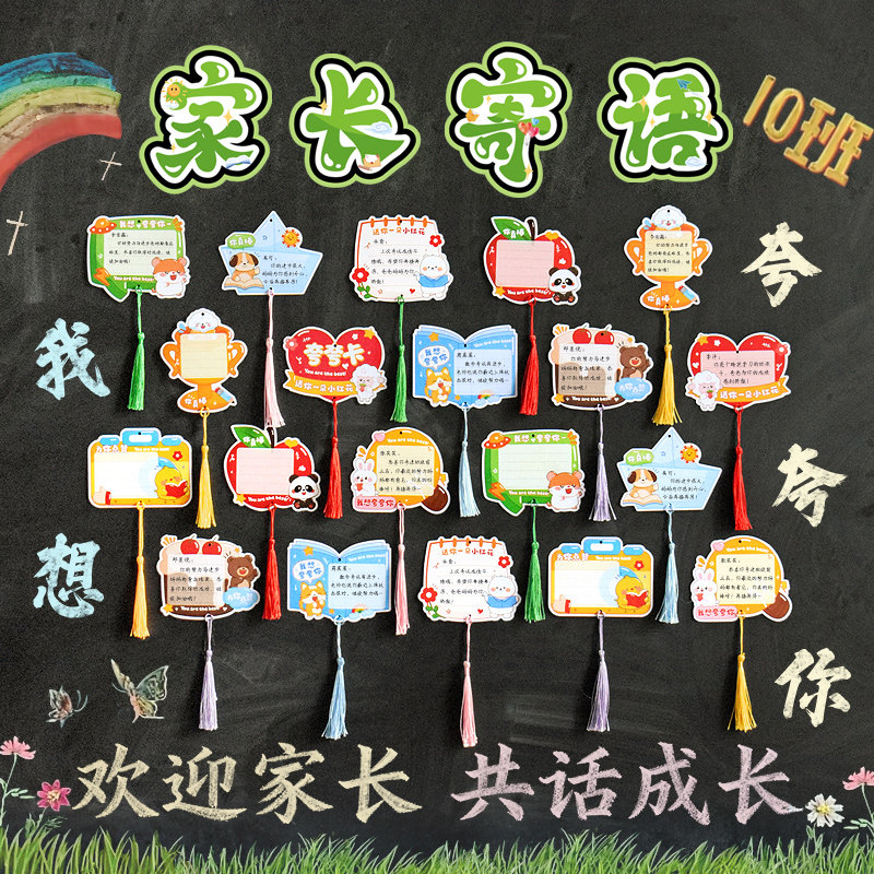 📚 知砚2026欢迎家长黑板报装饰贺卡套装学校班级期末家长会创意手写空白留言寄语墙可爱卡通氛围感墙贴布置卡片