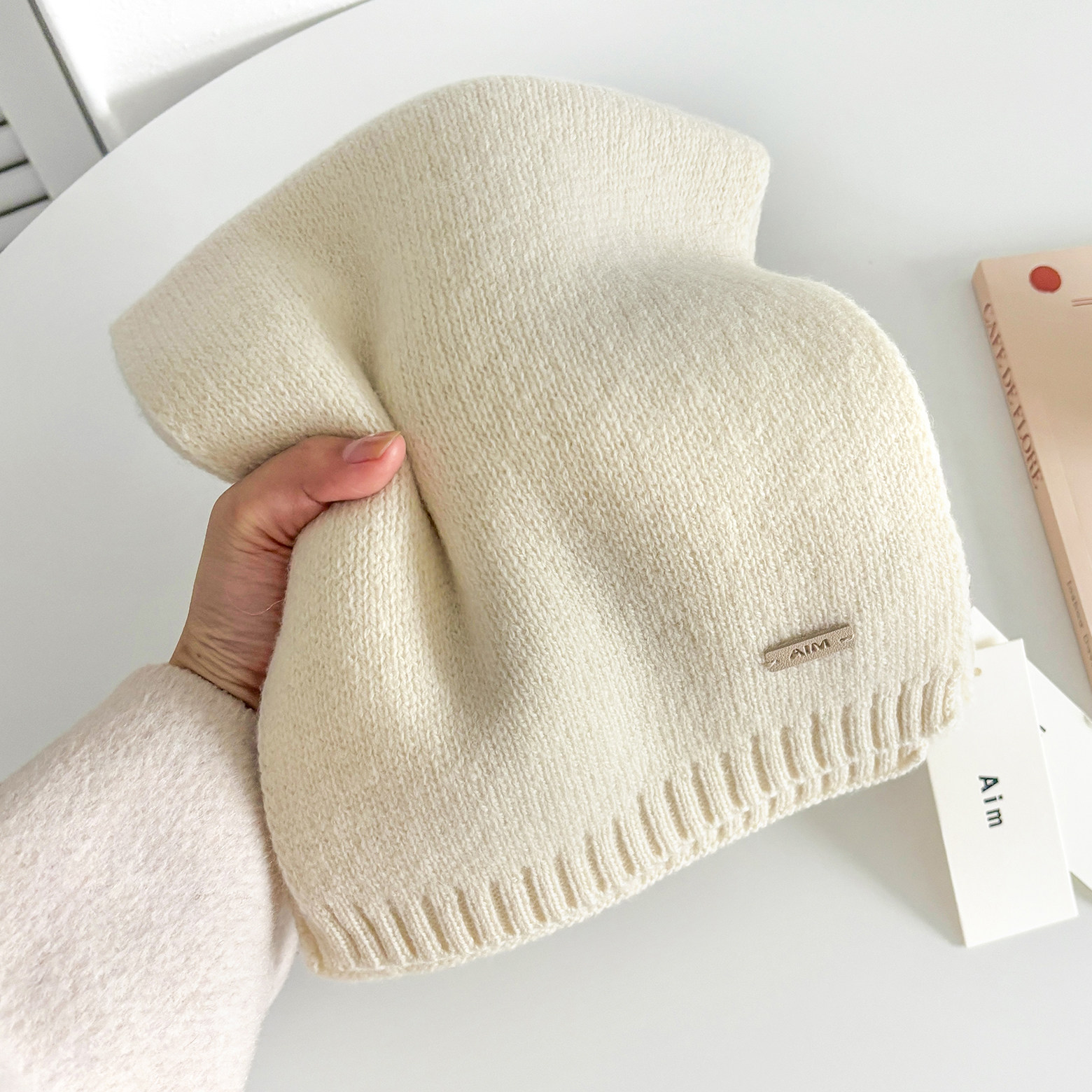 📚 100%澳洲纯羊毛针织围脖女冬季长款米白软糯云朵触感情侣毛线围巾