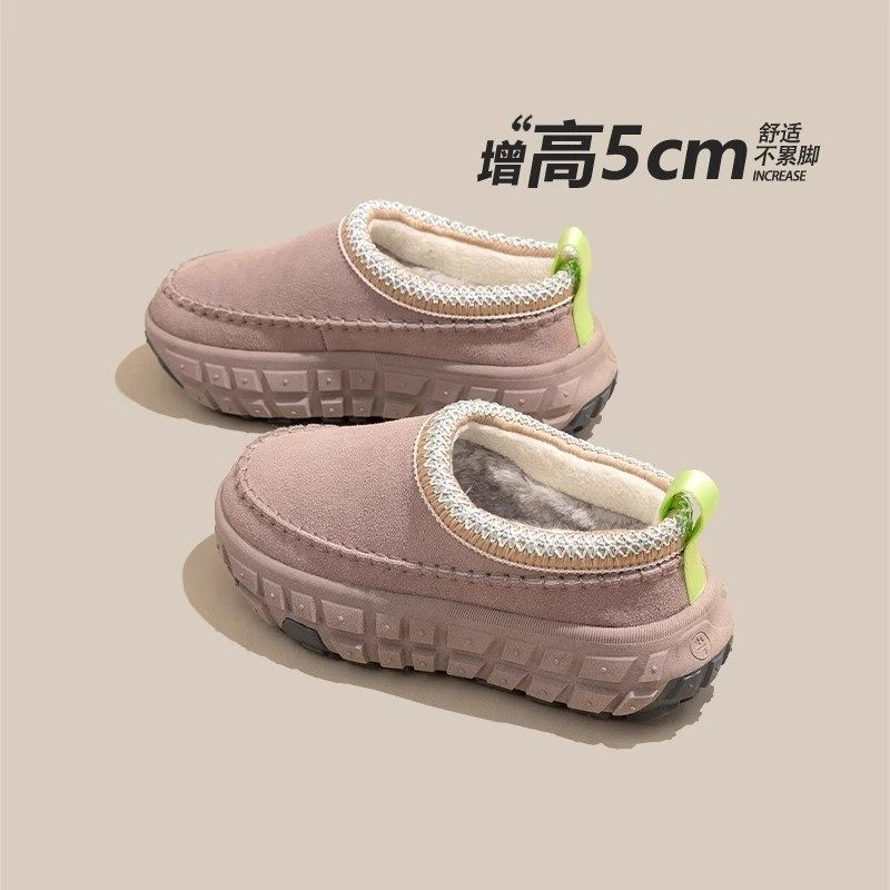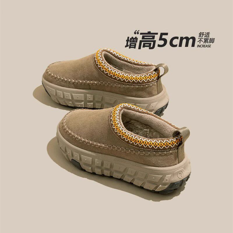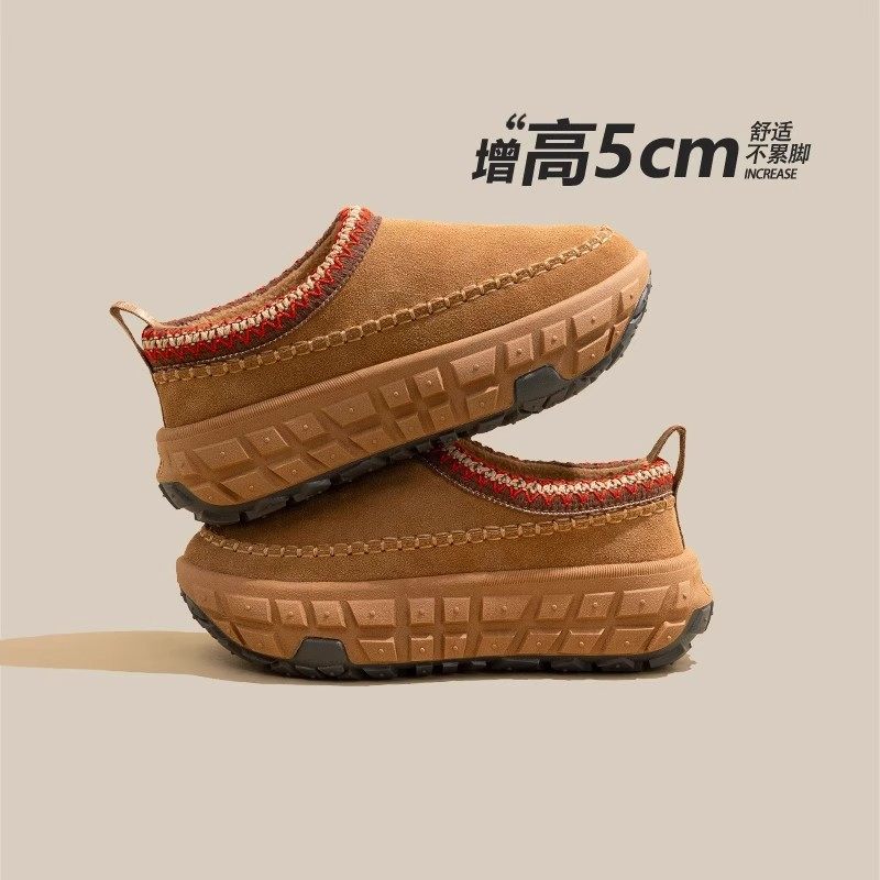 📚 增高5CM雪地靴女2025秋冬季新款民族风厚底轮胎底加绒一脚蹬棉鞋