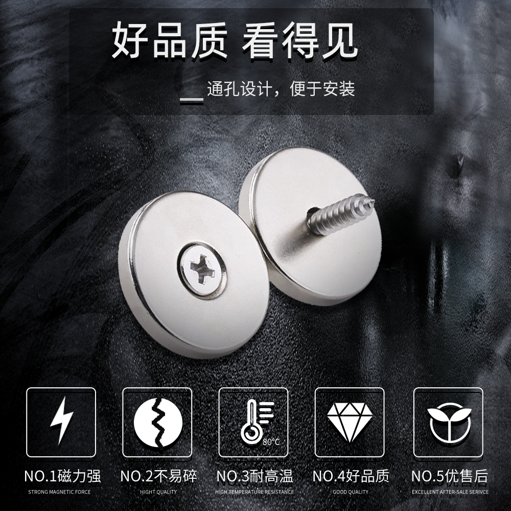 📚 高强力磁铁圆形D20-D30mm带沉头孔打捞超强磁钢钕铁硼稀土磁石1个