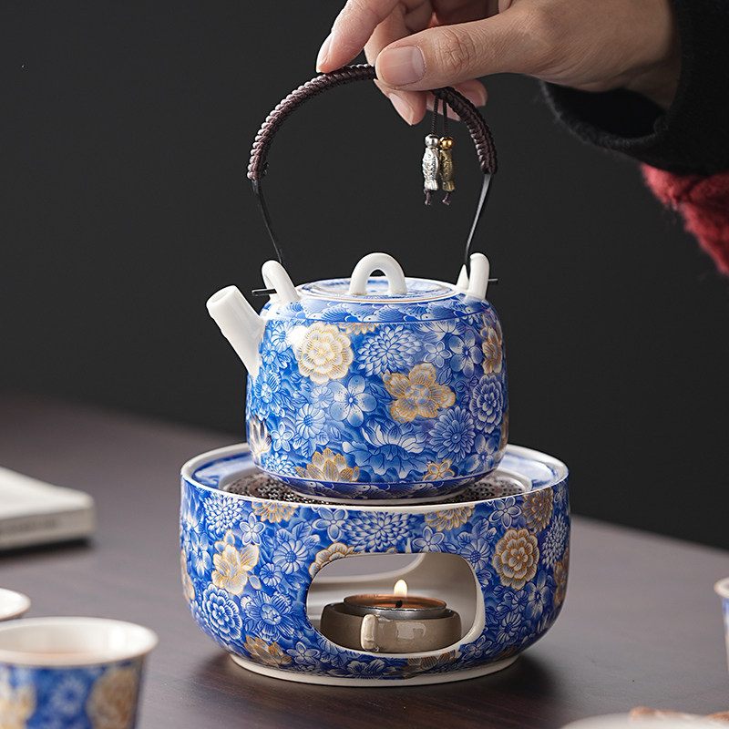 📚 青花温茶炉蜡烛煮茶炉加热炉花茶壶暖茶陶瓷保温底座温茶器提香烘