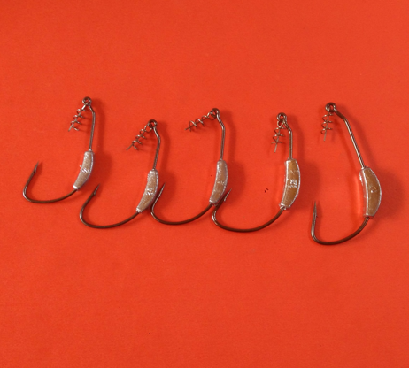📚 精品软虫钩弹簧锁针铅配重软饵钩路亚钩窄腹曲柄钩钓组专用钩