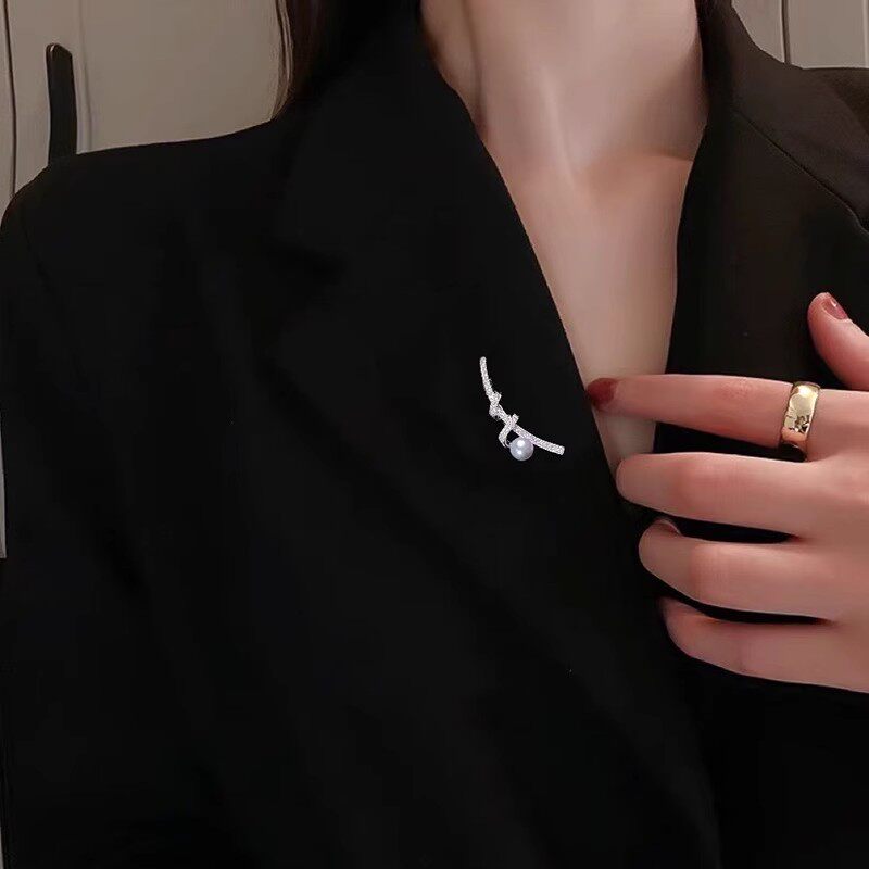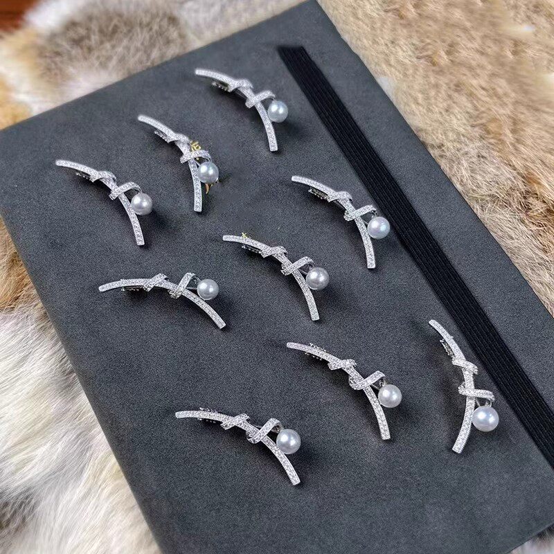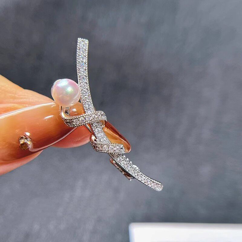 📚 DIY配件 气质百搭简约鱼竿胸针铜镀金镶锆石个性别针珍珠胸花空托