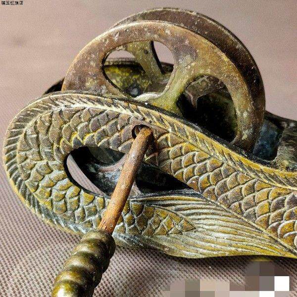 📚 古玩铜器收藏纯铜黄铜大龙头墨斗古代手工老式墨斗复古怀旧收藏