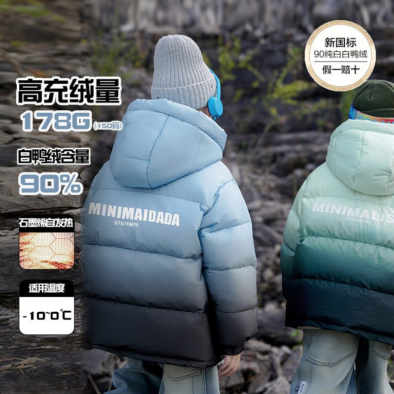 📚 儿童羽绒服冬季新国标90白鸭绒渐变色三防男女童高充绒量保暖外套