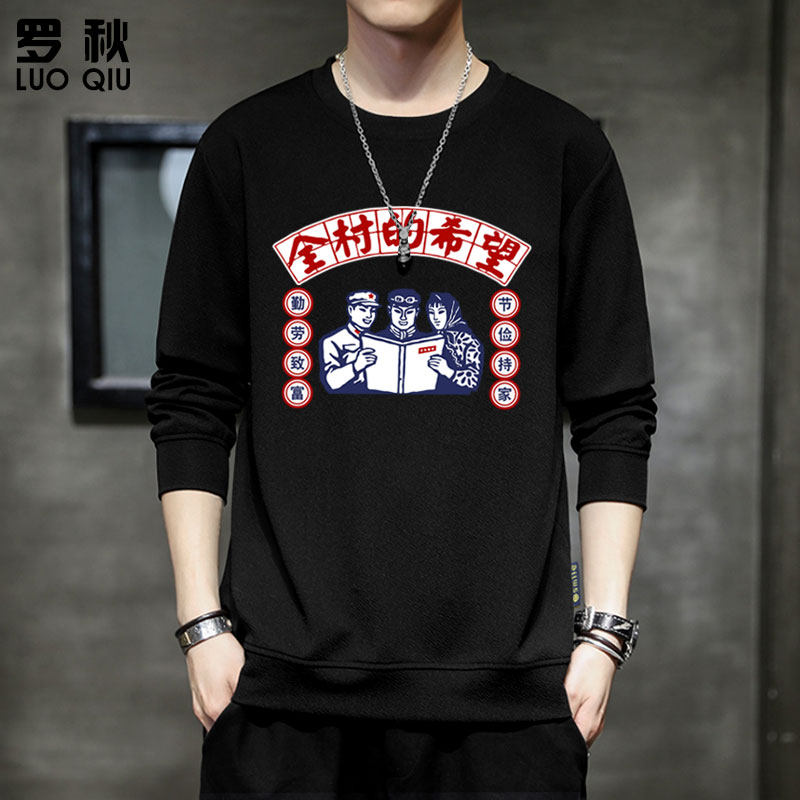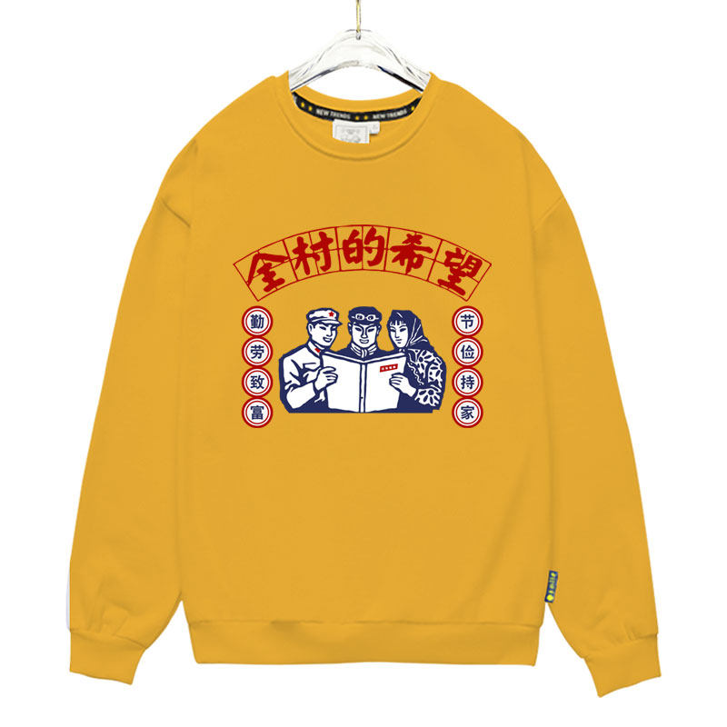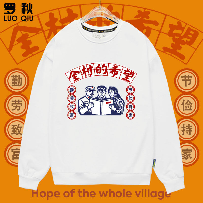 📚 文艺复古全村的希望励志标语创意文字圆领卫衣男女套头长袖上衣服