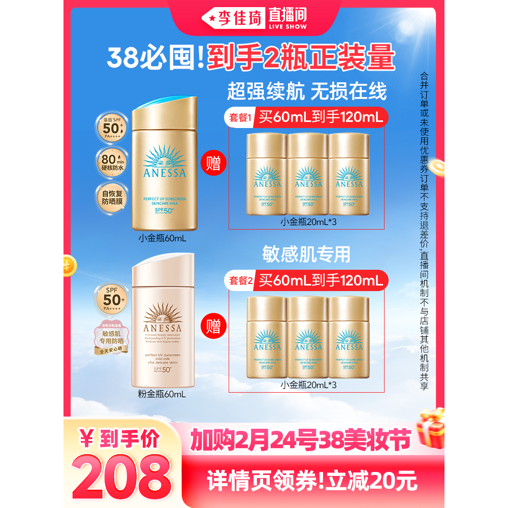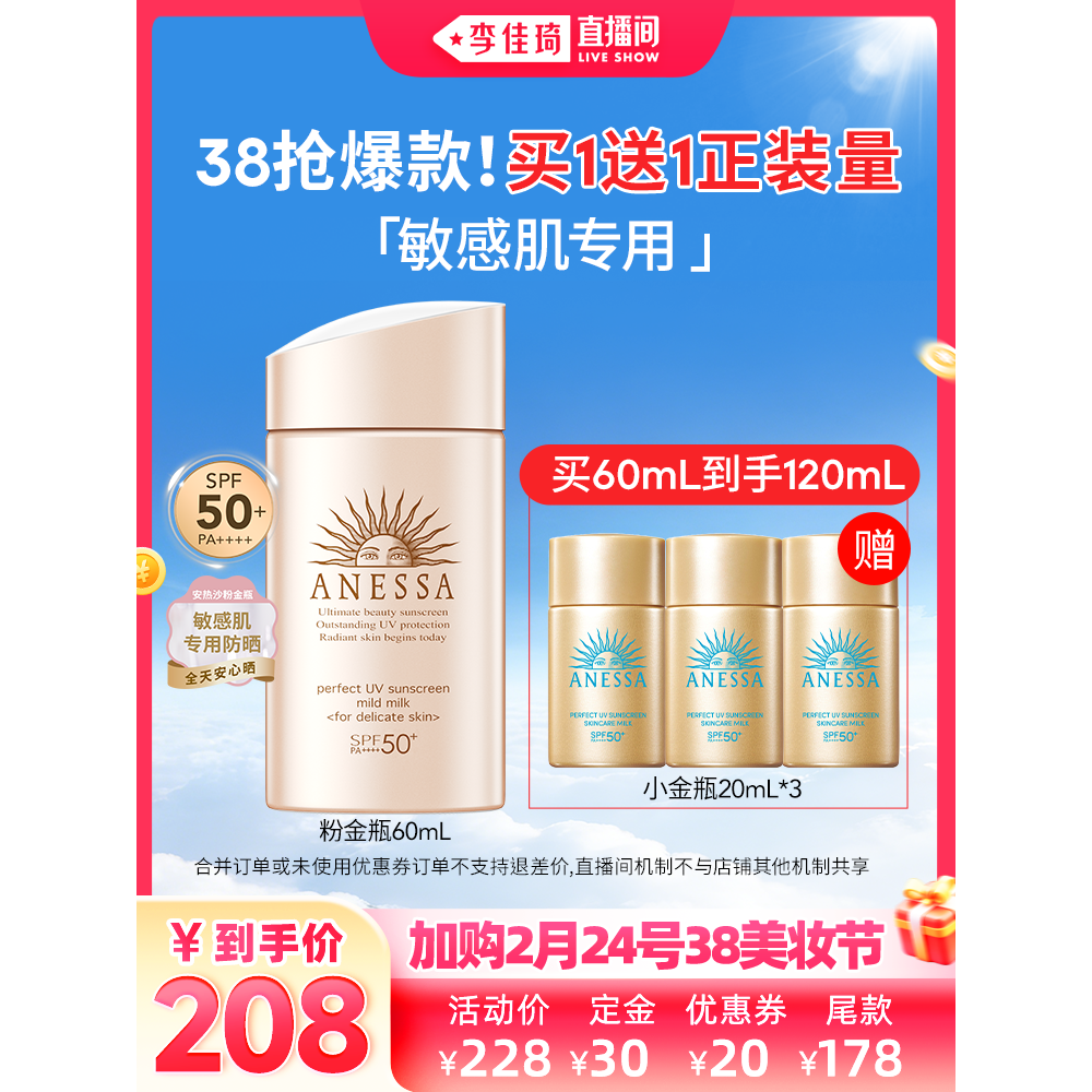 📚 【李佳琦直播间】安热沙智感倍护小金瓶防晒乳液60ml