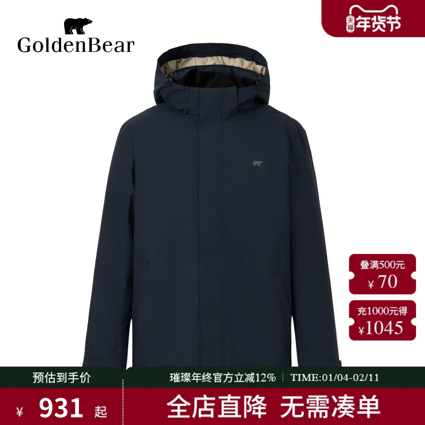 📚 【90鸭绒】GOLDEN BEAR/金熊 新款男装上衣可脱帽短厚款羽绒服