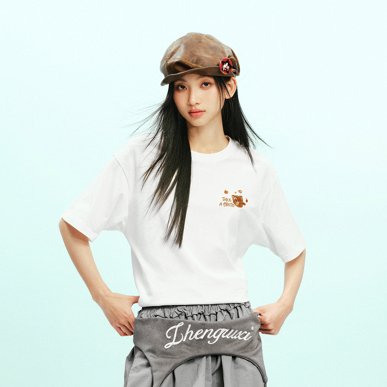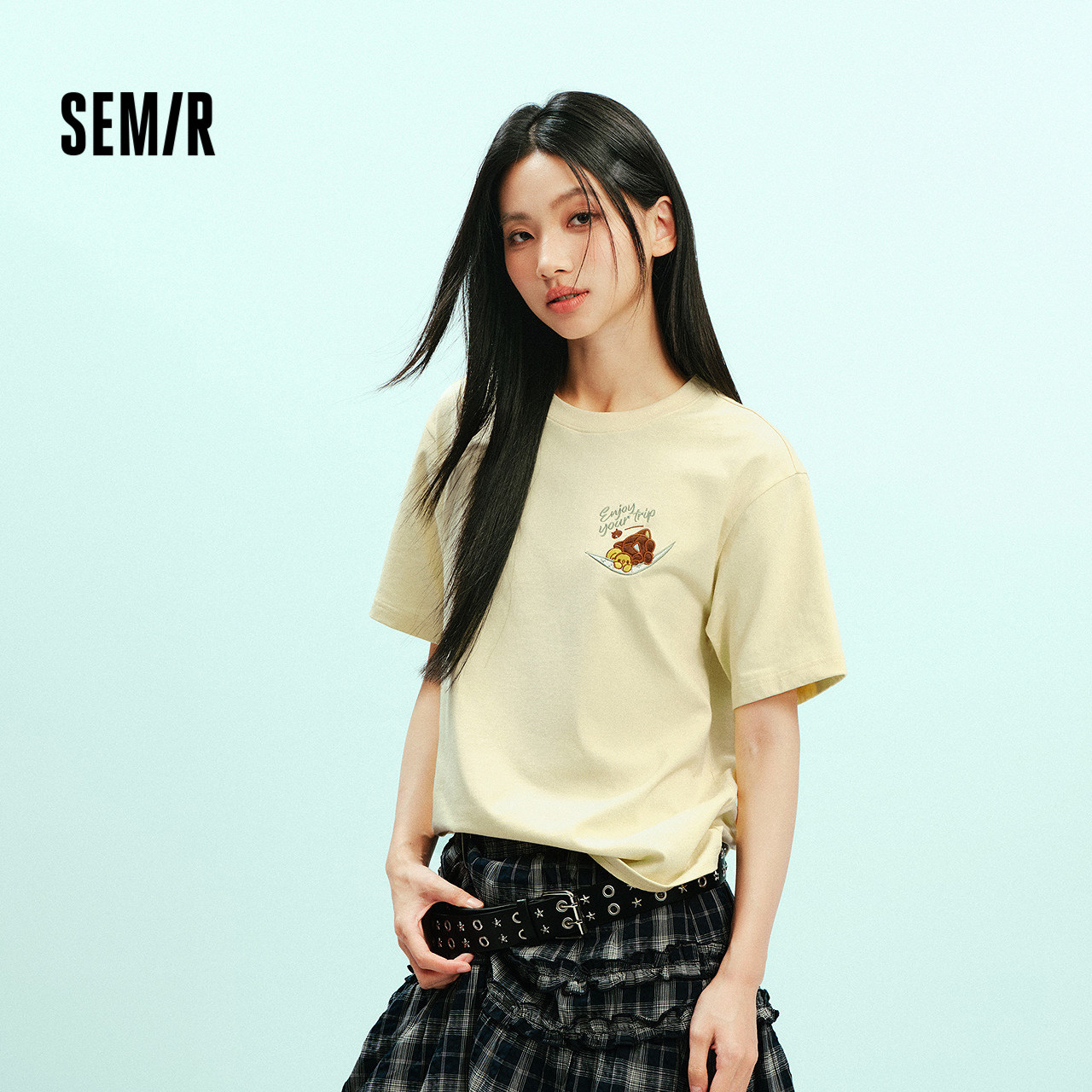 📚 森马罗小黑短袖T恤女夏季吸湿速干卡通刺绣落肩2026新款可爱上衣