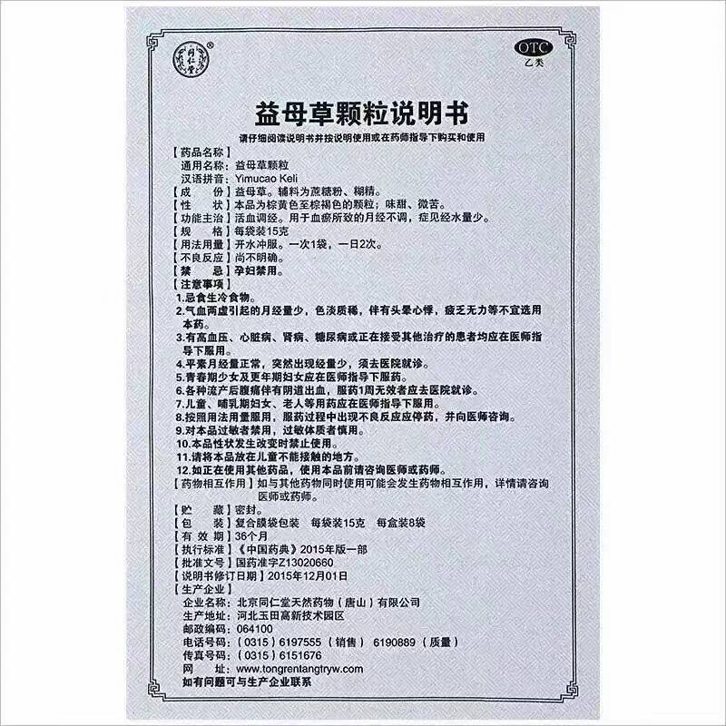 📚 同仁堂益母草颗粒8袋/盒活血调经月经不调经水量少血瘀
