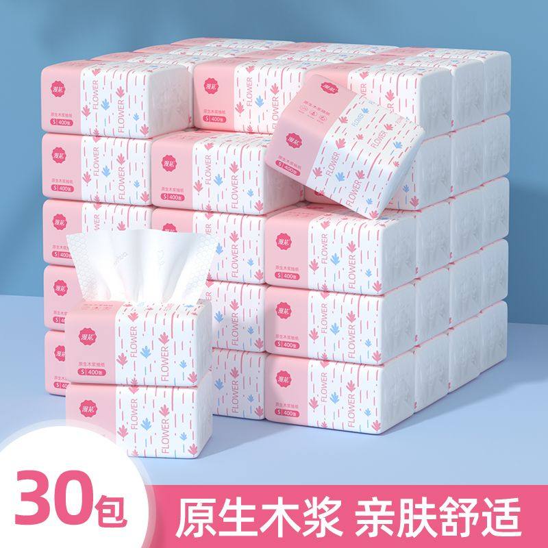 📚 漫花400张30大包抽纸加厚整箱批卫生纸巾家用实惠装餐巾纸擦手纸