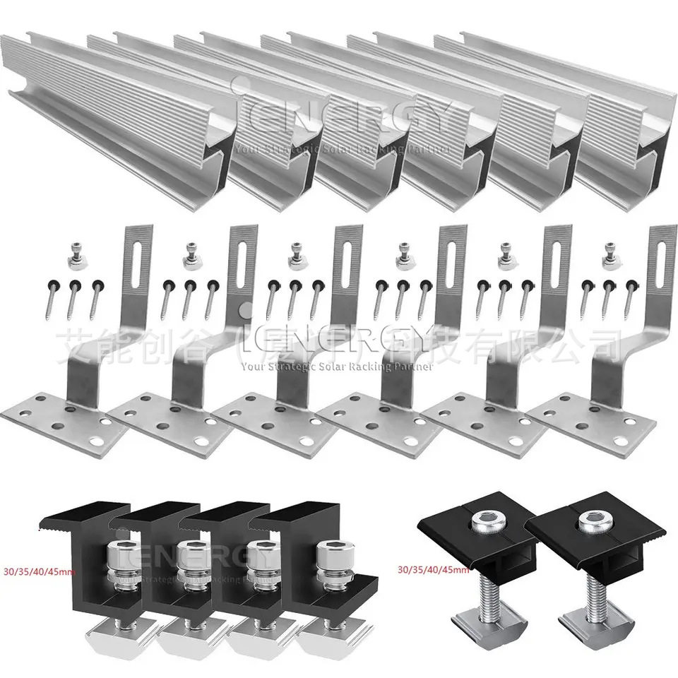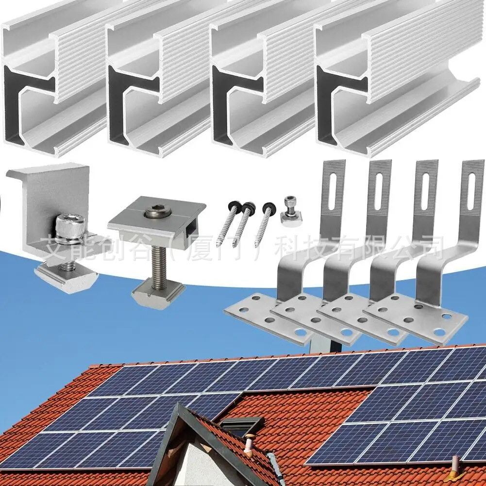 📚 2块太阳能板光伏支架整套安装方案导轨小底板挂钩中侧压支架套装