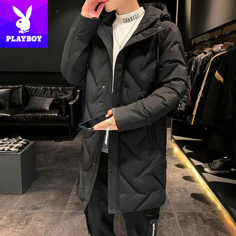 📚 花花公子羽绒服男中长款2025冬季新款青少年学生冬装休闲羽绒外套