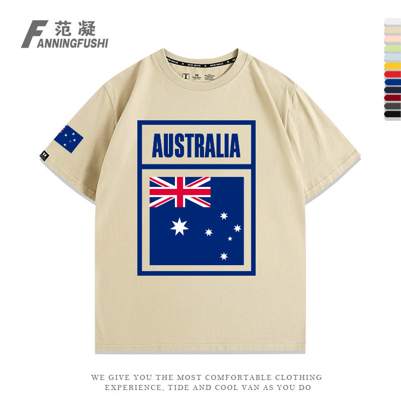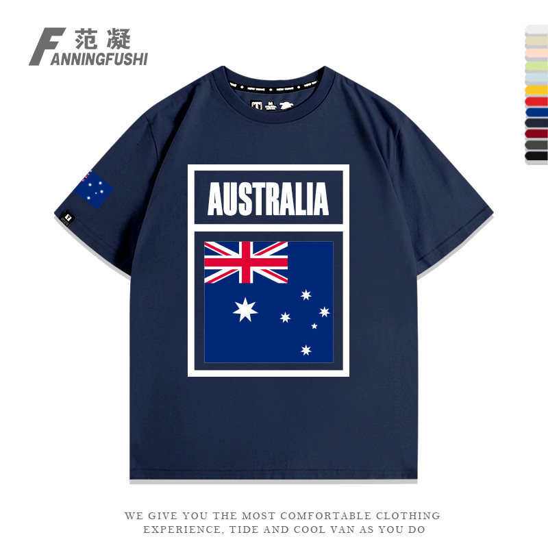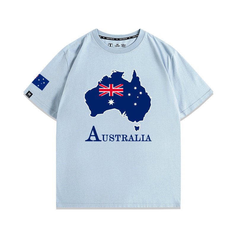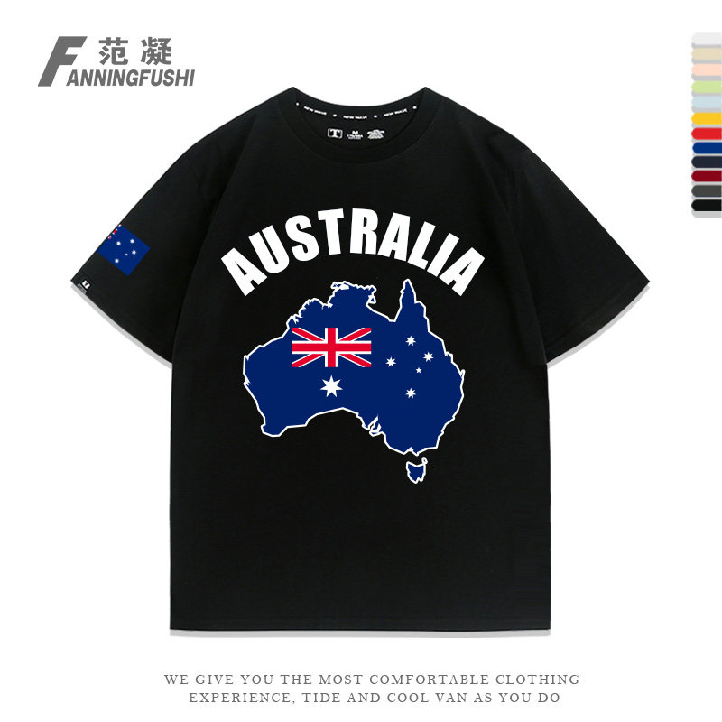📚 澳大利亚地图Australia澳洲旗帜旅行团短袖男女夏足球迷纯棉T恤衫