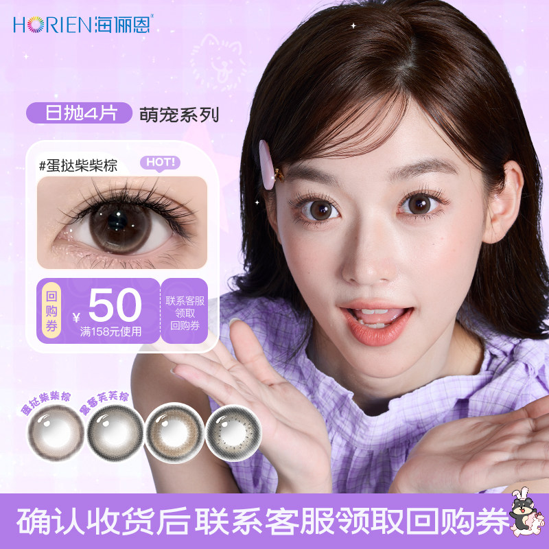 📚 【百亿补贴】海俪恩美瞳日抛4片彩色隐形眼镜大小直径蛋挞柴柴