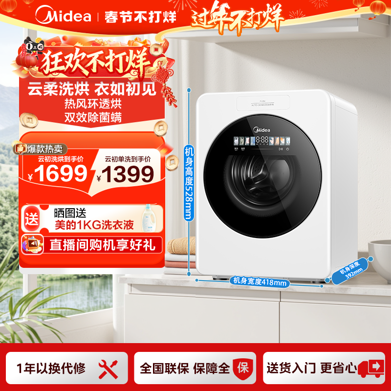 📚 美的云初Y2迷你宝宝1.2KG小型婴儿内衣裤全自动洗衣机洗烘一体