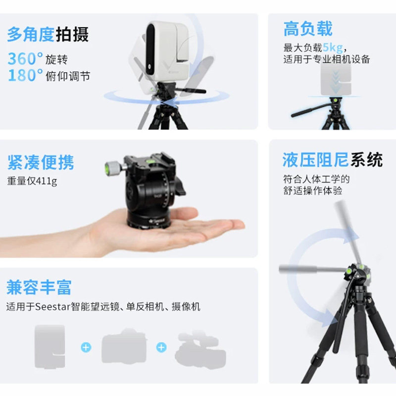 📚 ZWO Seestar TH10液压云台 TC20三脚架 可S50 S30赤道仪模式拍摄