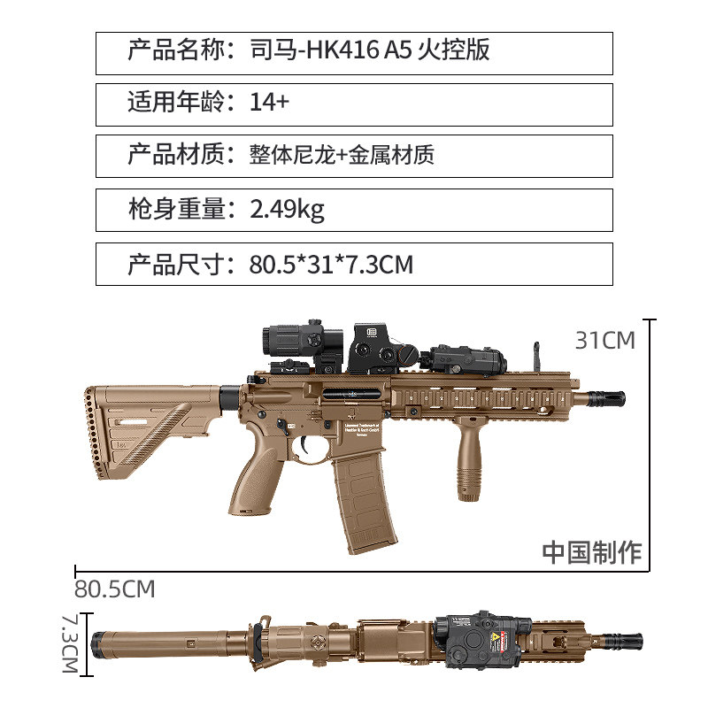 📚 司马HK416 A5火控版电动回膛空挂军典M4冲锋玩具枪wargame发射器