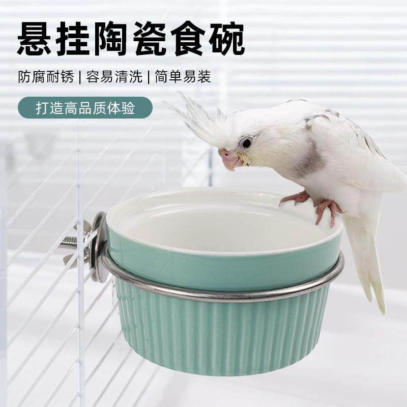 📚 鹦鹉防溅食盒陶瓷碗鸟食罐防翻喝水碗鸟笼内挂食碗防撒小鸟喂食器