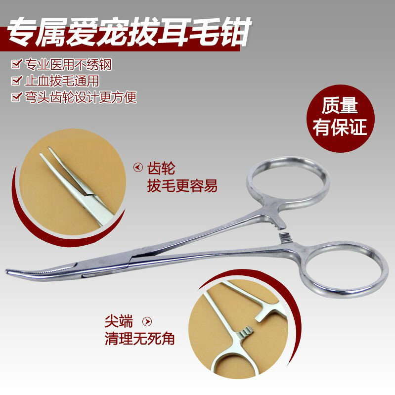 📚 乐比不锈钢狗狗拔耳毛钳止血钳直头弯头手术钳血管钳宠物拔毛镊子
